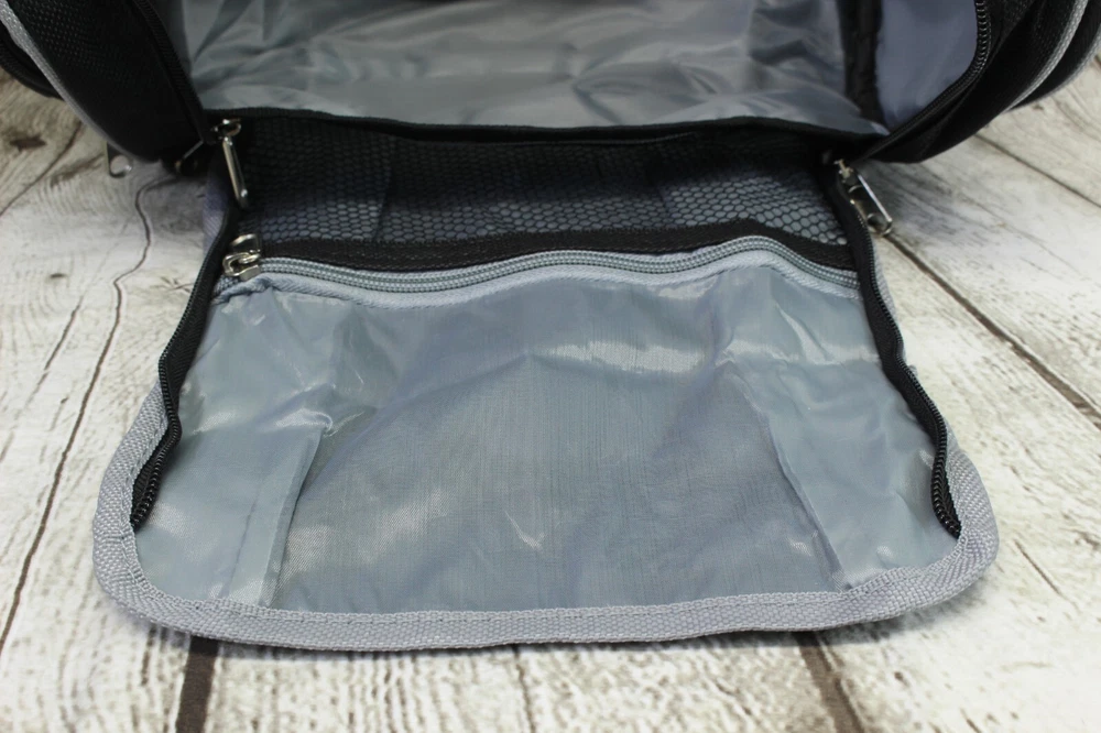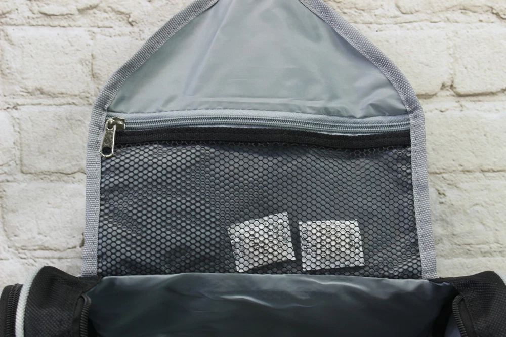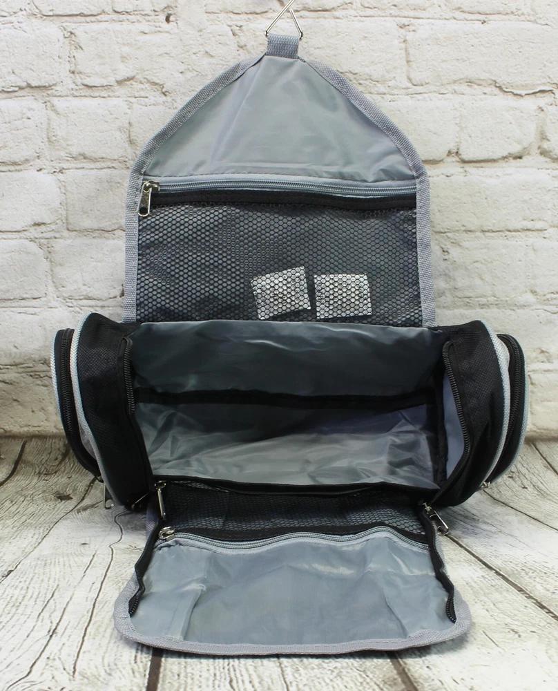 This Bella Russo travel bag is perfect for all your toiletry and makeup needs. With 6 pockets and a convenient hook, it's easy to keep all your items organized and accessible. The bag is made of lightweight canvas polyester and features a solid black pattern that makes it a stylish addition to your travel gear. Measuring 12 inches in size, this toiletry bag is spacious enough to fit all your essentials without being too bulky. Plus, the black and gray color scheme is versatile and gender-neutral. Whether you're traveling for business or pleasure, this Bella Russo travel bag is the ideal companion for all your grooming needs.