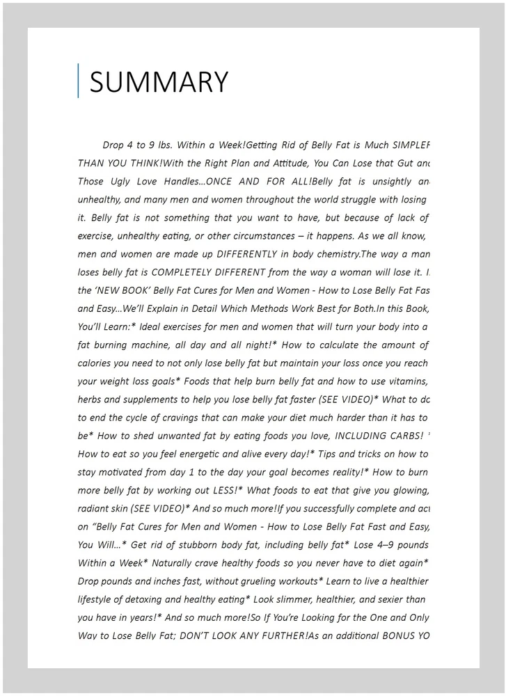 Belly Fat Cures for Men and Women : How to Lose Belly Fat Fast and Easy!, Paperback by Walker, Eugene, ISBN 1500626872, ISBN-13 9781500626877, Like New Used, Free shipping in the US Drop 4 to 9 lbs. Within a Week!Getting Rid of Belly Fat is Much SIMPLER THAN YOU THINK!With the Right Plan and Attitude, You Can Lose that Gut and Those Ugly Love Handles…ONCE AND FOR ALL!Belly fat is unsightly and unhealthy, and many men and women throughout the world struggle with losing it. Belly fat is not something that you want to have, but because of lack of exercise, unhealthy eating, or other circumstances – it happens. As we all know, men and women are made up DIFFERENTLY in body way a man loses belly fat is COMPLETELY DIFFERENT from the way a woman will lose it. In the 'NEW BOOK’ Belly Fat Cures for Men and Women - How to Lose Belly Fat Fast and Easy…We’ll Explain in Detail Which Methods Work Best for this Book, You’ll Learn:* Ideal exercises for men and women that will turn your body into a fat burning machine, all day and all night!* How to calculate the amount of calories you need to not only lose belly fat but maintain your loss once you reach your weight loss goals* Foods that help burn belly fat and how to use vitamins, herbs and supplements to help you lose belly fat faster (SEE VIDEO)* What to do to end the cycle of cravings that can make your diet much harder than it has to be* How to shed unwanted fat by eating foods you love, INCLUDING CARBS! * How to eat so you feel energetic and alive every day!* Tips and tricks on how to stay motivated from day 1 to the day your goal becomes reality!* How to burn more belly fat by working out LESS!* What foods to eat that give you glowing, radiant skin (SEE VIDEO)* And so much more!If you successfully complete and act on “Belly Fat Cures for Men and Women - How to Lose Belly Fat Fast and Easy, You Will…* Get rid of stubborn body fat, including belly fat* Lose 4–9 pounds Within a Week* Naturally crave healthy foods so you never have to diet again* Drop pounds and inches fast, without grueling workouts* Learn to live a healthier lifestyle of detoxing and healthy eating* Look slimmer, healthier, and sexier than you have in years!* And so much more!So If You’re Looking for the One and Only Way to Lose Belly Fat; DON’T LOOK ANY FURTHER!As an additional BONUS YOU WILL GET ACCESS TO A FREE VIDEO that will show you which exercises are MOST EFFECTIVE in losing belly fat and OVER A DOZEN DELICIOUS recipes you can prepare at ANYTIME that will get your metabolism going in HIGH GEAR and help you lose that belly in NO TIME!So Wait NO MORE!Belly Fat Cures for Men and Women - How to Lose Belly Fat Fast and Easy!GRAB YOUR COPY TODAY AND LOOK A BETTER YOU TOMORROW!