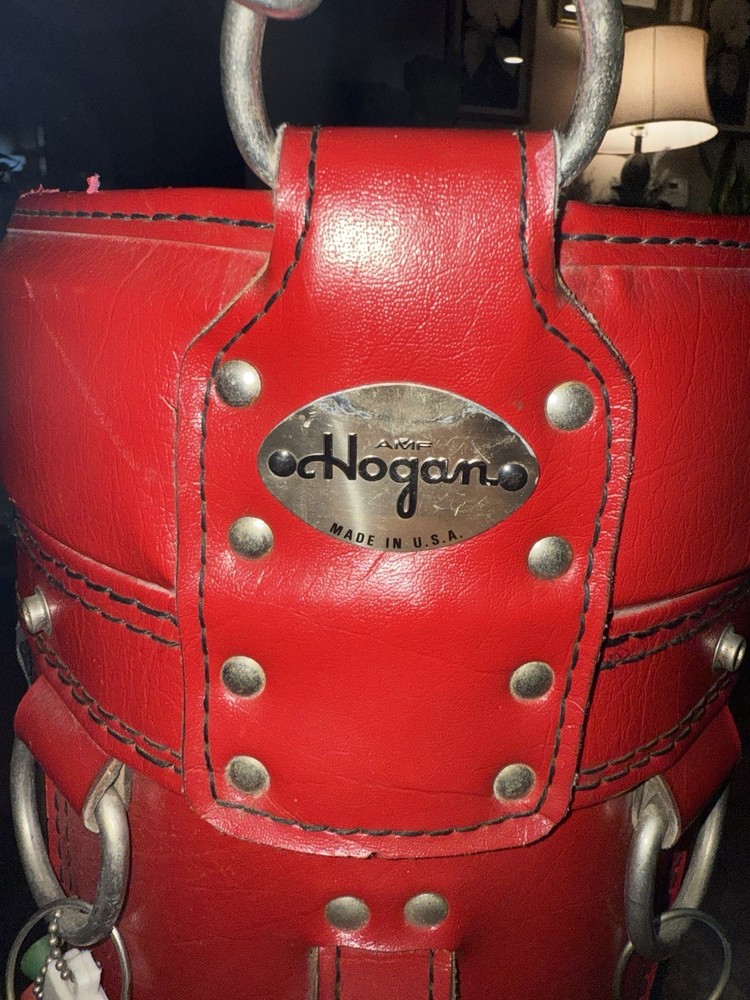 The Ben Hogan Vintage Leather Golf Club Bag in Red, White, and Blue is a stylish and functional carry bag perfect for any golfer. Made of high-quality leather, this large bag features a 3-way divider system, multiple pockets, including an umbrella holder and a water-resistant rain cover. The zip closure, padded shoulder strap, and carry handle make it convenient for transportation on the golf course. The patriotic color scheme and vintage design make this bag a timeless choice for any golfer looking to add some style to their game.