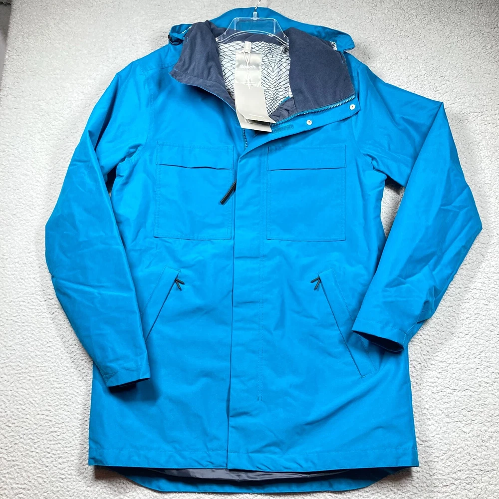 For sale: Bench Jacket Men's Medium Blue Hooded Waterproof Odor Control Tech Full Zip NEW Please check photos carefully for details/measurements. Measure your favorite garment and compare. This item may be wrinkled upon arrival due to packaging. We welcome questions and offers! Thank you for taking time to view and consider this item!