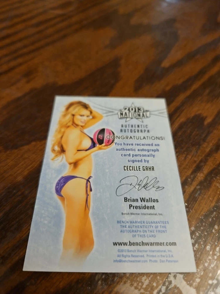 Benchwarmer 2013 Cecille Gahr National Autograph Gold Foil Card Auto Playboy She is known for Beauty and the Geek (CW) and Bikini Destinations. Please, look at all the pictures. Please check out my other eBay accounts... https://www.ebay.com/usr/kimmyrael https://www.ebay.com/usr/matlac99 https://www.ebay.com/usr/lacr6837 https://www.ebay.com/usr/malac9440 https://www.ebay.com/usr/lacr_3567 https://www.ebay.com/usr/lacroki8 https://www.ebay.com/usr/lacroki9 Shipping only to the continental US unless you contact me first. Will combine shipping!!!