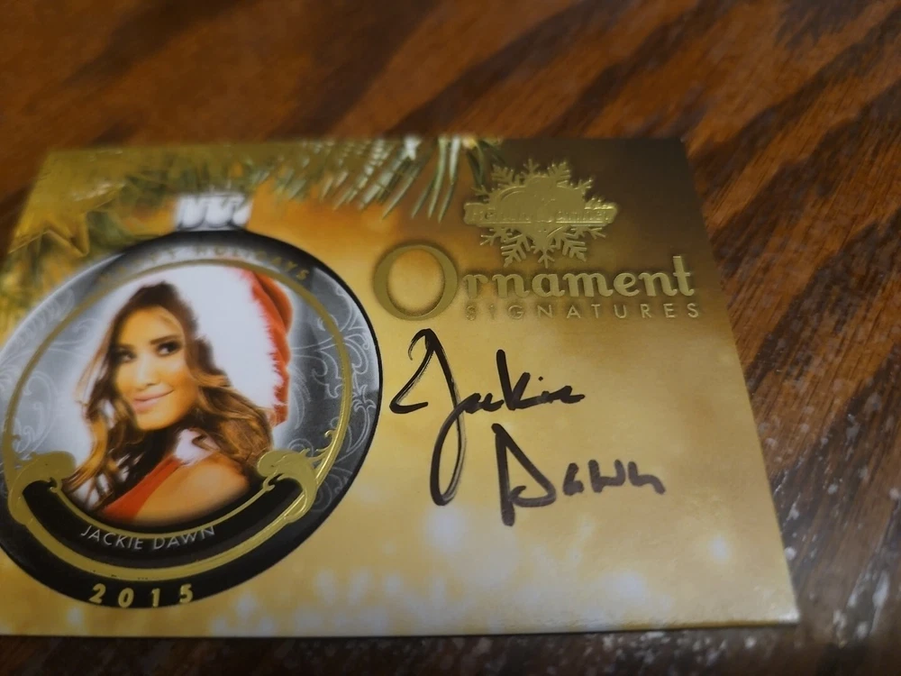 Benchwarmer 2015 Jackie Dawn Happy Holidays Ornament Signatures Autograph Card Playboy Luscious and petite 5'4" brunette stunner Jackie Dawn was born on January 10, 1990 in Los Angeles, California. Of Asian and East Indian descent, Dawn grew up in Los Angeles. Jackie was encouraged by her twin sister Cassandra Dawn to pursue a modeling career as well as attend an open casting call for Playboy TV. Dawn did her first nude shoot for Playboy Plus in April, 2012. Jackie raises plants, reads fiction, and goes out for dinner and drinks with her friends in her spare time. Please, look at all the pictures. Please check out my other eBay accounts... https://www.ebay.com/usr/kimmyrael https://www.ebay.com/usr/matlac99 https://www.ebay.com/usr/lacr6837 https://www.ebay.com/usr/malac9440 https://www.ebay.com/usr/lacr_3567 https://www.ebay.com/usr/lacroki8 https://www.ebay.com/usr/lacroki9 Shipping only to the continental US unless you contact me first. Will combine shipping!!!