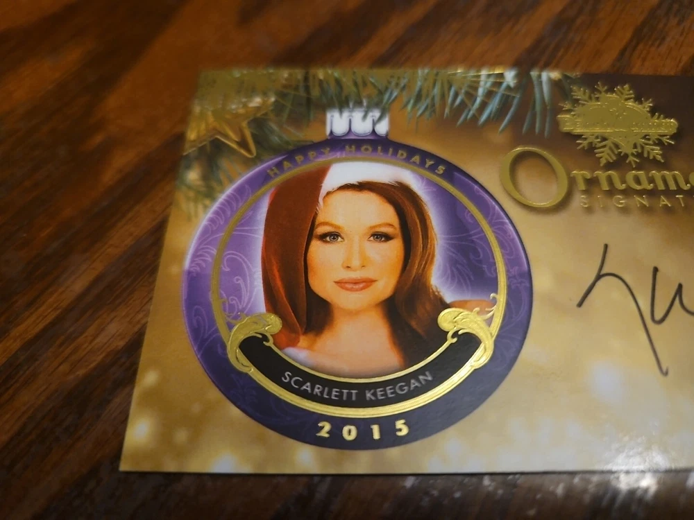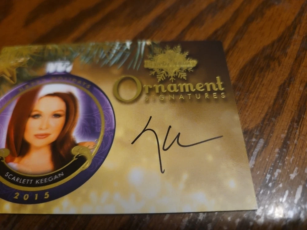 Benchwarmer 2015 Scarlett Keegan Happy Holidays Ornament Signatures Autograph Card Playboy Playmate Slim, sexy, and ravishing curly-haired redhead beauty Scarlett Keegan was born on May 18, 1984 in Westlake Village, California. She's of Irish descent. Scarlett decided at age three that she wanted to be a model and an actress; she started modeling and acting in various TV commercials and print ads when she was a child. In 2003 a friend referred Keegan to "Playboy" so she could try out for the 50th Anniversary Playmate Hunt. After making her debut in a pictorial in the December, 2003 issue of "Playboy," Scarlett was chosen to be the Playmate of the Month in the September, 2004 issue of the famous men's magazine. Keegan subsequently appeared in a couple of "Playboy" videos. In 2005 Keegan and her fellow Playmates Destiny Davis and Jennifer Walcott were given keys to Las Vegas, Nevada by Mayor Oscar Goodman in appreciation for posing for a swimwear calendar promoting the city. She has studied acting at the Gaiety School in Ireland. Moreover, Scarlett appears in the music video for "Beverly Hills" by Weezer and has an uncredited bit role in the comedy "Walk Hard: The Dewey Cox Story." Please, look at all the pictures. Please check out my other eBay accounts... https://www.ebay.com/usr/kimmyrael https://www.ebay.com/usr/matlac99 https://www.ebay.com/usr/lacr6837 https://www.ebay.com/usr/malac9440 https://www.ebay.com/usr/lacr_3567 https://www.ebay.com/usr/lacroki8 https://www.ebay.com/usr/lacroki9 Shipping only to the continental US unless you contact me first. Will combine shipping!!!