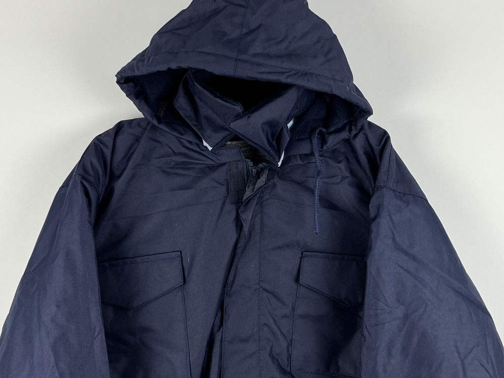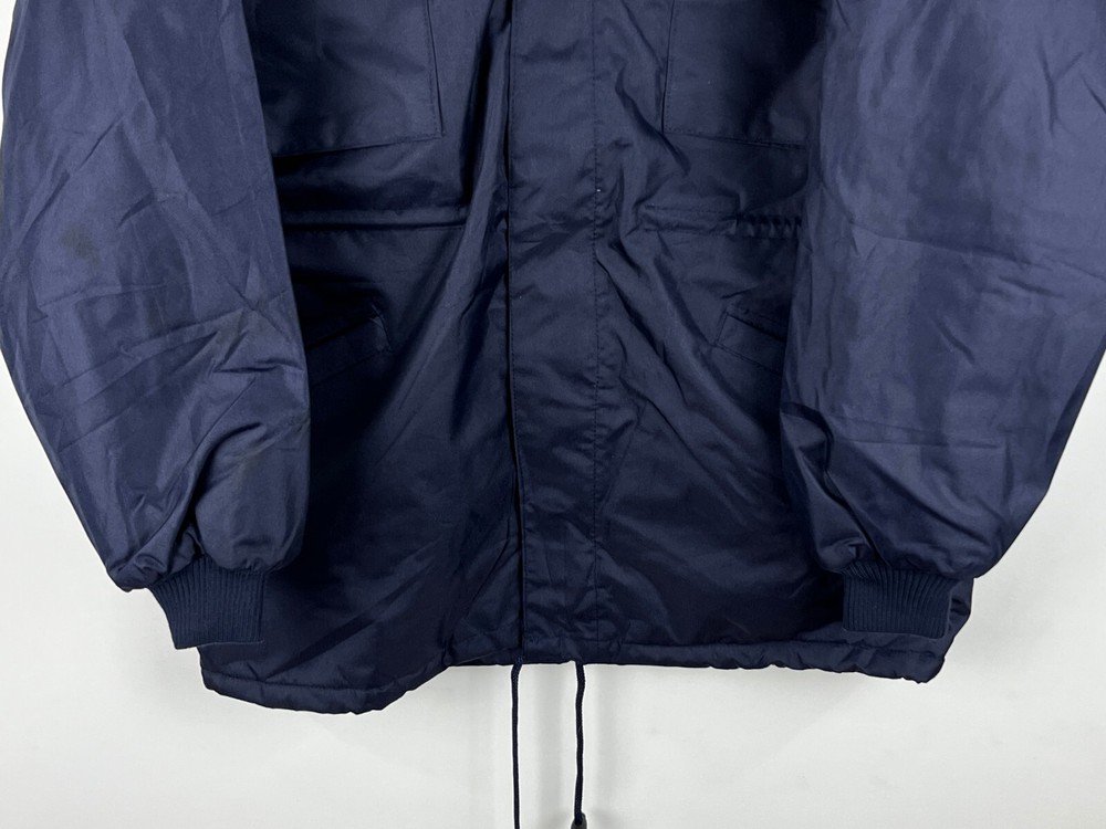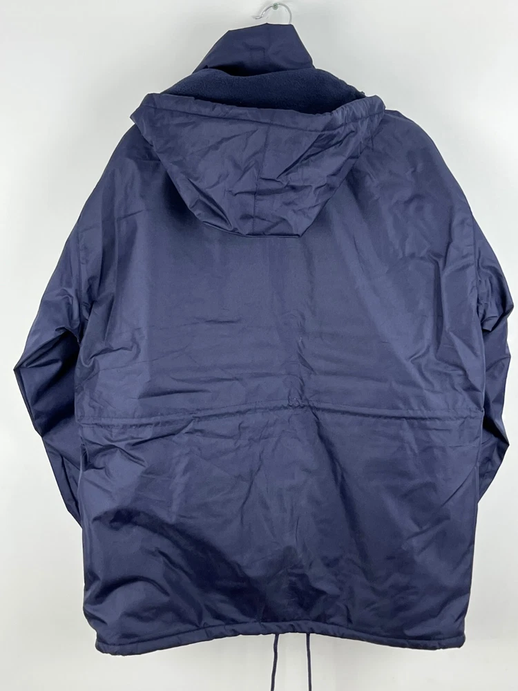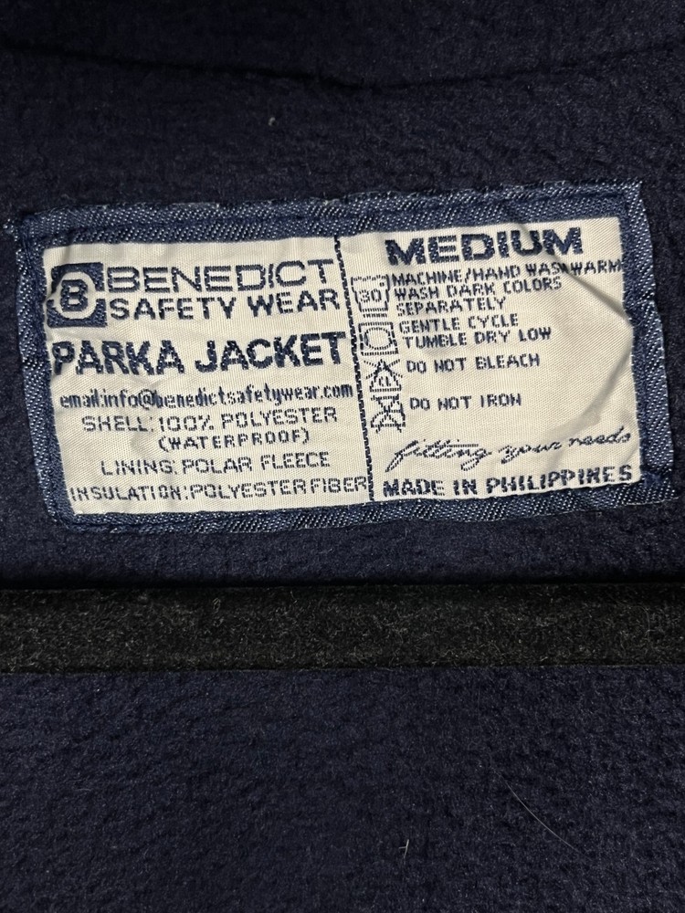 This Benedict Safety Wear parka jacket is a must-have for any outdoor enthusiast or worker. With a hooded design and full zip closure, it provides both warmth and protection from the elements. The jacket is made of waterproof polyester material and features multiple pockets for convenient storage. The mid-length jacket is machine washable and has a relaxed fit, making it easy to wear for extended periods of time. The blue color and solid pattern give it a classic look, while the insulated polyester lining and insulation material keep you warm in cold weather. Perfect for travel, casual wear, or work, this jacket is a great addition to any wardrobe. Dimensions Shoulder to shoulder 22in Pit to pit 25in Shoulder to bottom 29in