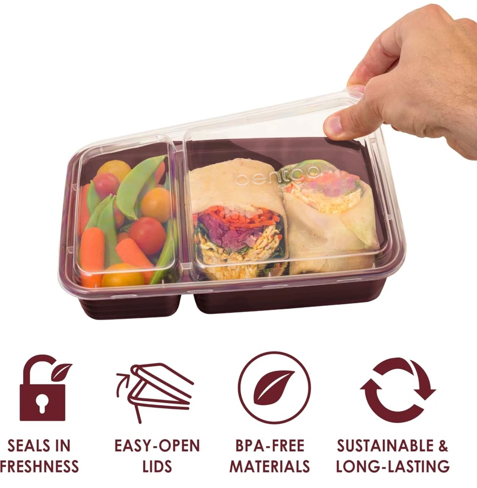 Everyone’s Favorite Meal Prep Pack*: Bentgo is America’s go-to brand for maintaining healthy habits! Pack nutritious meals for the entire week with this practical 20-piece set that comes with ten 2-compartment trays and ten custom-fit lids that help seal in freshness, so you can enjoy breakfasts, lunches, dinners, and even leftovers on the go. Portion Controlled Design: No need to measure your portions—volume is already embossed on the tray to help you with your healthy eating goals, diet, or weight loss plans. The custom-fit lids keep food fresh all day long and stack together neatly to save you space in your pantry. Plus, all the lids are clear, so you can easily identify what food is inside at a glance. Easy to Heat & Clean: Safely heat up your food straight from the freezer or refrigerator for warm, delicious meals and leftovers. Each meal prep container is both microwave and top-shelf dishwasher safe. Note: do not microwave lids, only the trays are microwavable. For best results, hand wash to extend the life of the product. Durable & Reusable: Made of tough, but safe, BPA-free materials, Bentgo Prep containers are designed to last meal after meal, so you can ditch single-use plastics with these eco-friendly containers. They are lightweight, portable, and easy to carry to the gym, office, dorm, soccer field, and more. What You Get: 10 two-compartment trays, 10 custom-fit lids, electronic meal prep book, and caring customer support.