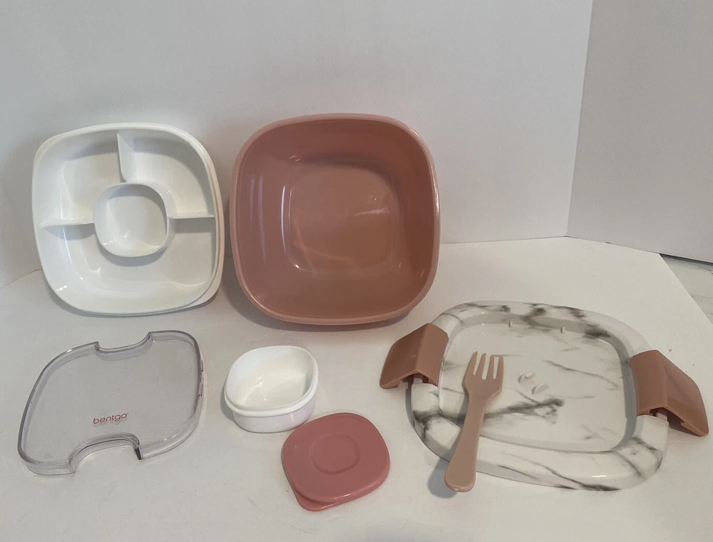 Bentgo Box Adult Lunch Container, 7 Piece Set w/Large Bowl And Compartments Condition is good, see photos for best representation. Thank you for looking and supporting my smal business!