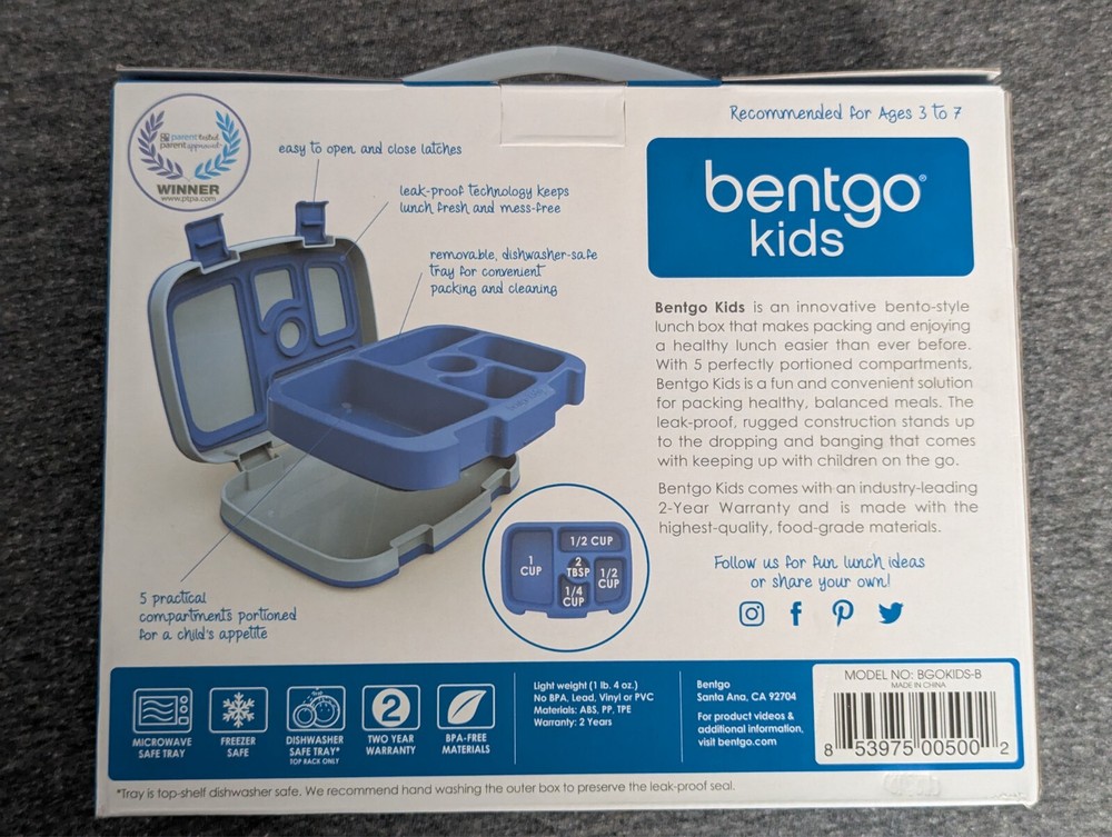 The Bentgo Kids' Brights is a blue, 5-compartment bento-style lunch box designed for kids. It is leak-proof and includes a divided tray for easy food separation. Perfect for storing and organizing kids' meals during school or outings.