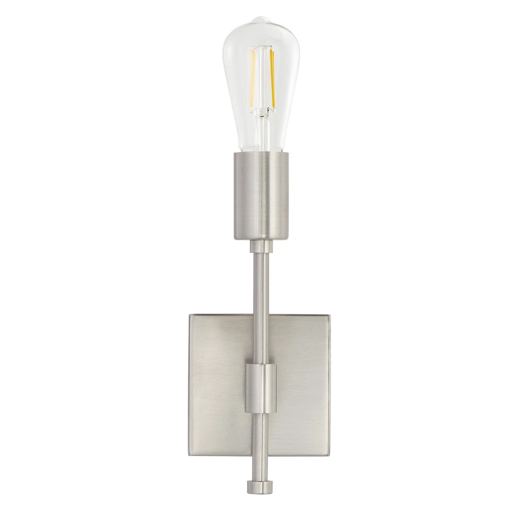 The Berbella single light wall sconce offers an industrial farmhouse design and a clean, contemporary look. The sleek metal finish, combined with dual exposed bulbs results in a stylish wall-mounted light fixture that coordinates beautifully with a wide range of home decor styles, from sleekly modern to farmhouse and beyond. Perfect for bathrooms, corridors, dining rooms, living areas, bedrooms and other spaces. Metal construction, brushed nickel finish Measures 4.5 inches wide by 14.5 inches high; extends 4 inches from the wall Dimmable when used with ELV dimmer Includes 4W 400 lumen, LED filament Edison style bulbs, 2,700K color temperature Works with most bulbs - with smart bulbs or most medium base bulbs up to 60W 1-year manufacturer with US based UL listed LED EDISON BULB INCLUDED - Brushed nickel light wall sconce comes with LED light bulb. Led wall sconce is dimmable and with most standard medium base bulbs EASY INSTALLATION - Farmhouse wall sconce vanity light with 4.5" mounting plate for simple hardwired installation. Can be installed uplight or downlight as bathroom sconces beside mirror MODERN WALL SCONCE LIGHT - Brushed Nickel sconce wall lighting is perfect for modern contemporary and traditional design as wall lights for hallway, living room, foyer, and bedroom wall sconce lighting bathroom vanity UL Listed - Rest assured this brushed nickel bathroom wall sconce light fixture is UL Listed ensuring its safety, performance, and energy efficiency. Indoor wall sconce wall light is dimmable. DESIGNED IN CHICAGO - our American customer support team is here to help