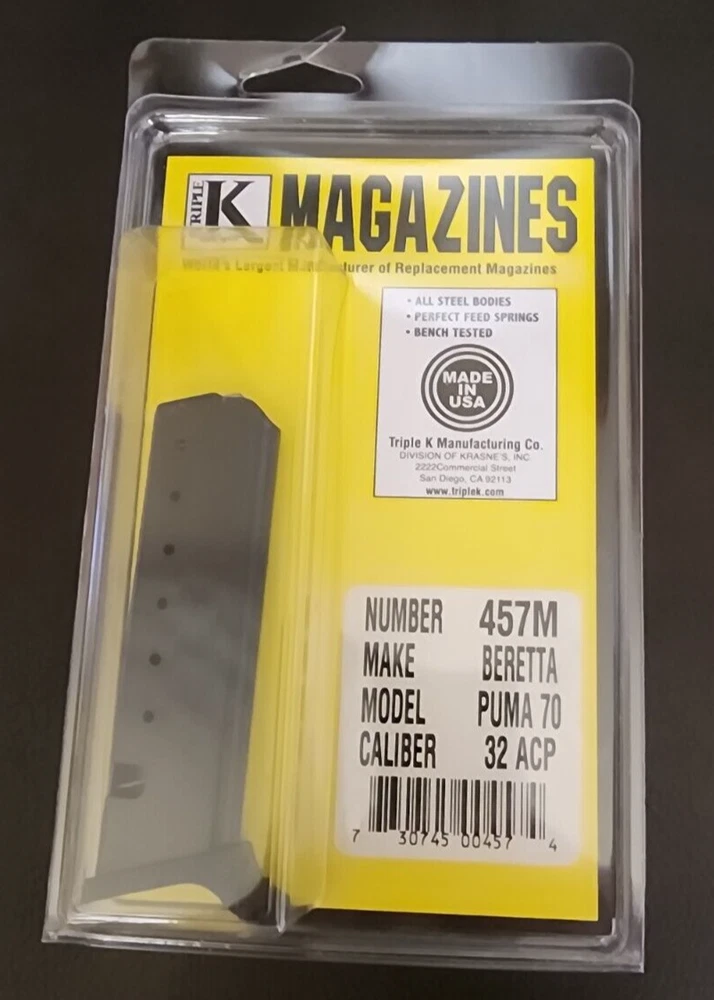 Beretta PUMA 70 - .32 ACP - 7 Round Pistol Triple K 457M Magazine - NEW