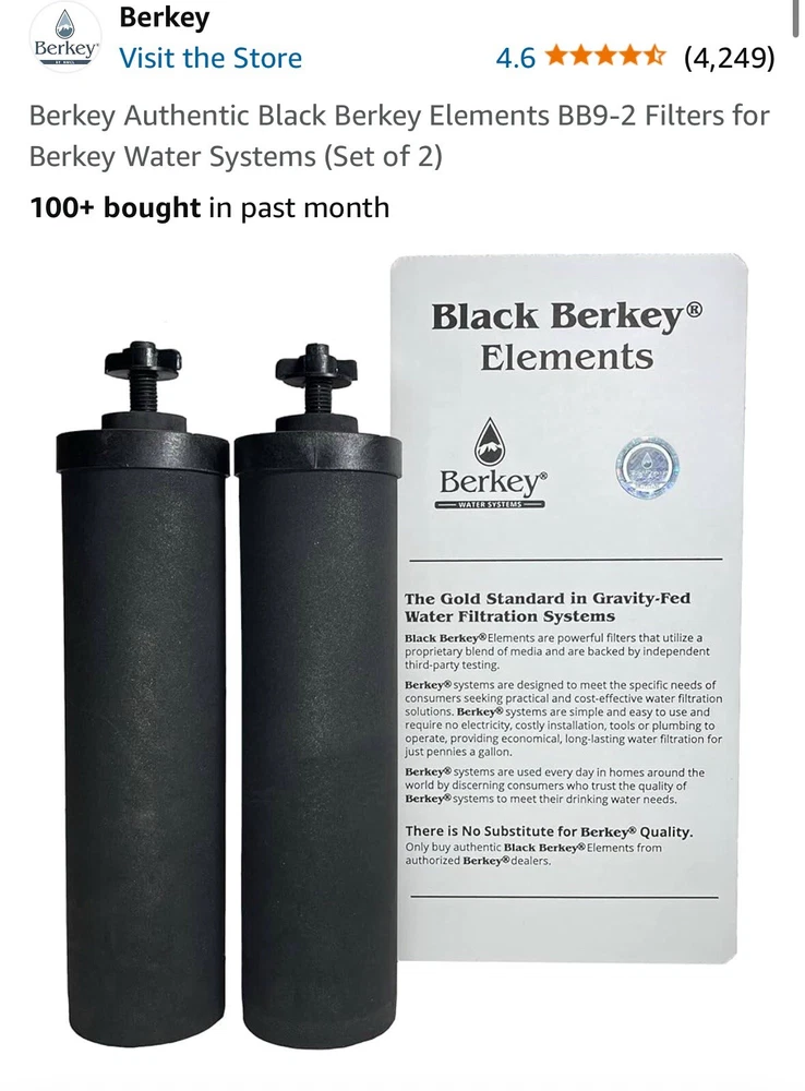 Berkey Authentic Black Berkey Elements BB9-2 Filters Water Systems (Set of 2)