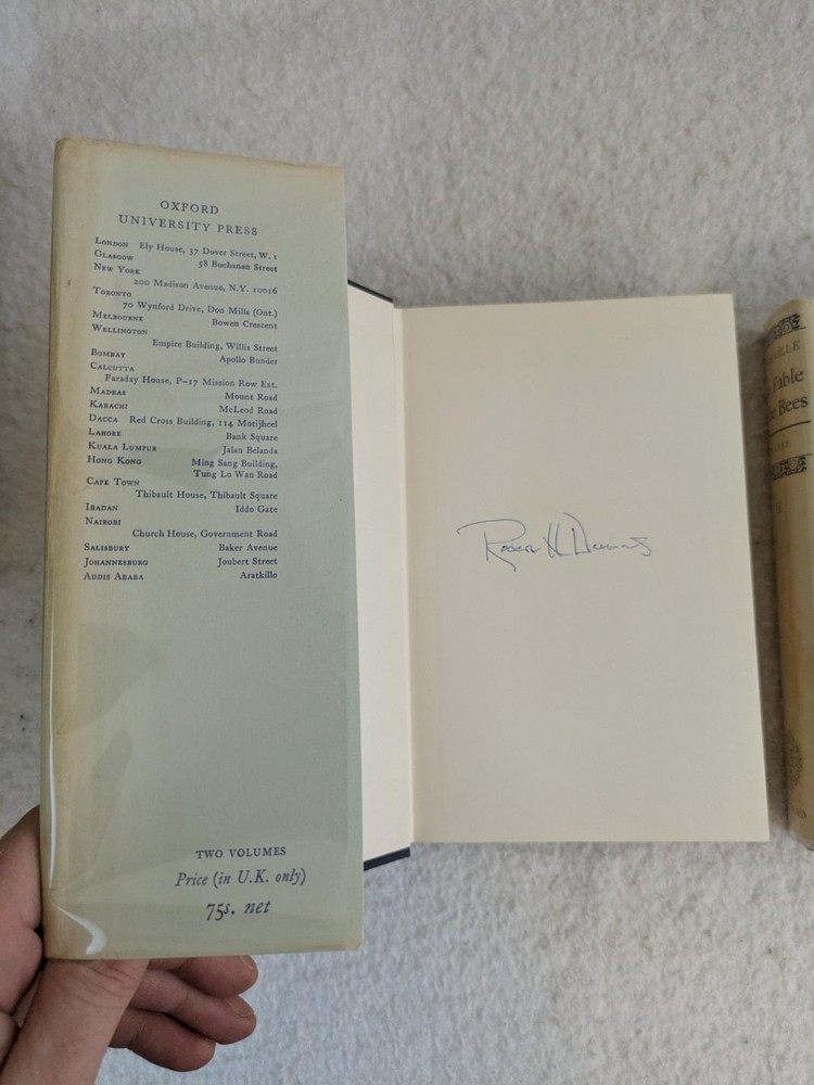 Bernard Mandeville THE FABLE OF THE BEES 2 Vol. Set 1966 Oxford University Press Later Printing In very good condition. Dust jackets protected by a removable mylar sleeve. Vol. 2 DJ is torn. Please examine photos for details. Condition: We strive to describe and photograph the condition of every item as accurately as possible. Photos are of the actual item that is being sold. Please examine the photos carefully for any condition details and possible flaws. Best Offers: Items are available for offers after being listed for 30 days. We consider all offers in relation to current market values. We try to respond almost immediately to most offers. Most of our counteroffers are firm but we are open to bargaining. Shipping for US Customers: We combine shipping. All of our orders are packed carefully to prevent damage during shipment. We ship most of our items within 24 hours. Shipping for International Customers: All international orders are shipped via Ebay's Global Shipping Program. Contact Us: We are available 7 days a week and are happy to answer any questions you may have. Attention Sellers - Get Templates Image Hosting, Scheduling at Auctiva.com.