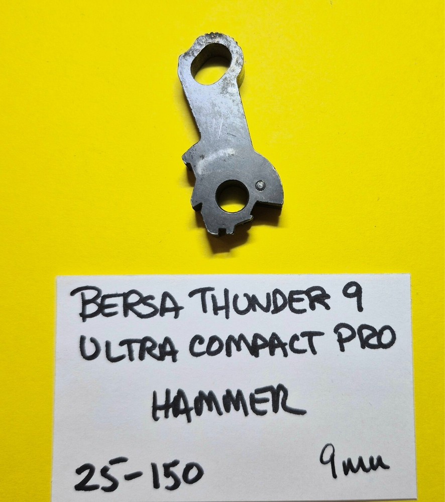 Model:Thunder 9Gauge/Caliber:9 mm LugerColor:BlackFor Gun Type:HandgunCountry/Region of Manufacture:ArgentinaBrand:Bersagtin13:DOES NOT APPLYMPN:Does Not ApplyType:HammerFeatures:FACTORYUPC:DOES NOT APPLYMaterial:SteelFor Gun Make:BersaSeller Notes:“Nice Bersa Thunder 9 Ultra Compact Pro 9mm Hammer #25-150”
