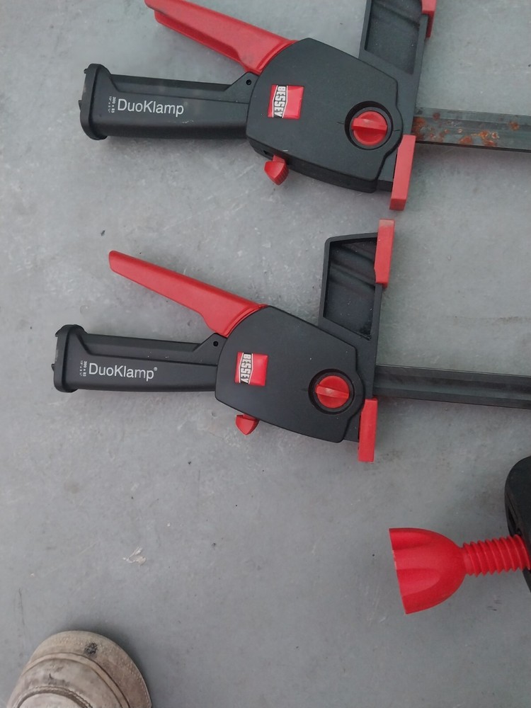 2 bessey bar Clamps 12in jaw and 1 coner craftsman clamp