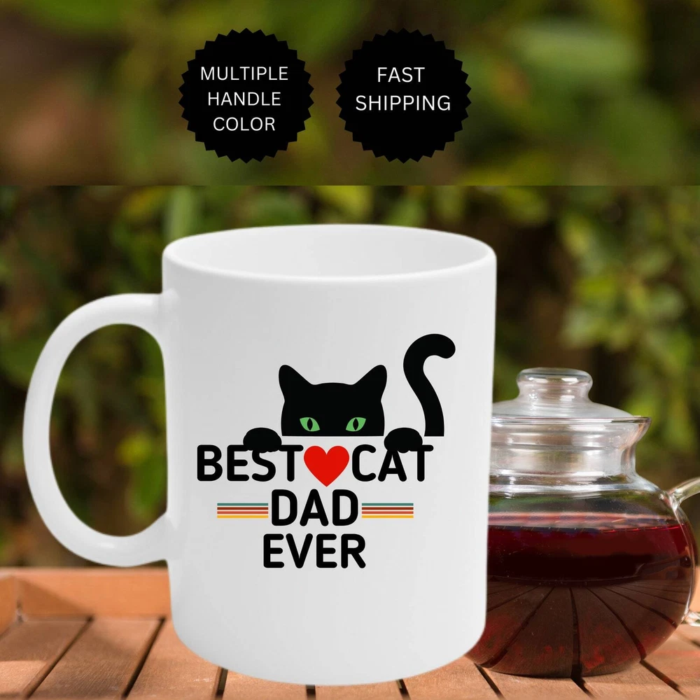 Best Cat Dad Ever New Dad Gift New Dad Mug Dad Est Mug New Daddy Mug Dad To Be Gift Fathers Day Gift Product Details.. This high quality 11oz. ceramic white mug has a premium hard coat that provides crisp and vibrant color reproduction sure to last for years. Perfect for all hot & cold beverages. The highest quality printing possible is used. It will never fade no matter how many times you wash it. Material: 100% Ceramic. Print both sides. Dishwasher and Microwave Safe. High Gloss + Premium White Finish. Printed in the U.S.A. Personalized & Custom. We support personalized and custom mug to add custom, when placing an order, you can add notes to the "order note" in shipping address section. Also you can contact us directly via message. Shipping Info. Ready to ship in 1 to 2 business days, All products are made-to-order and proudly printed in the United States. Shipped by USPS and DHL, You will receive your order in 5-7 days. Replace & Refund. All products are defective during shipping broken, chipped will be replaced free of charge. You are not satisfied with the product, we will refund 100% money to you. If any other issues arise, please do not hesitate to message, we would be more than happy to assist you.