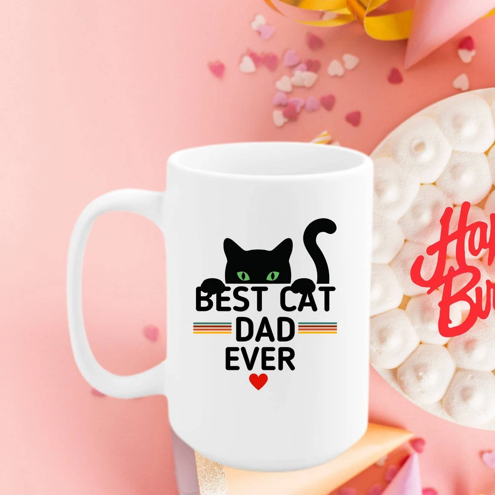 Best Cat Dad Evercat Dad Mug Best Cat Dad Ever Cat Dad Coffee Mug Cat Dad Gifts Cat Father Cat Dad Cat Lover Gift Product Details.. This high quality 11oz. ceramic white mug has a premium hard coat that provides crisp and vibrant color reproduction sure to last for years. Perfect for all hot & cold beverages. The highest quality printing possible is used. It will never fade no matter how many times you wash it. Material: 100% Ceramic. Print both sides. Dishwasher and Microwave Safe. High Gloss + Premium White Finish. Printed in the U.S.A. Personalized & Custom. We support personalized and custom mug to add custom, when placing an order, you can add notes to the "order note" in shipping address section. Also you can contact us directly via message. Shipping Info. Ready to ship in 1 to 2 business days, All products are made-to-order and proudly printed in the United States. Shipped by USPS and DHL, You will receive your order in 5-7 days. Replace & Refund. All products are defective during shipping broken, chipped will be replaced free of charge. You are not satisfied with the product, we will refund 100% money to you. If any other issues arise, please do not hesitate to message, we would be more than happy to assist you.