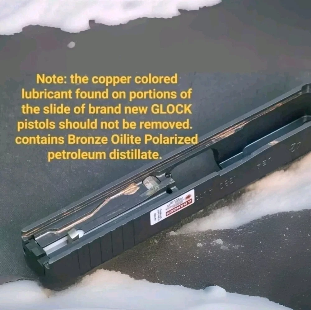 5cc 5ML SIZE The perfect gift for the one who has everything GLOCK. Sure will be a surprise! "The copper colored lubricant found on portions of the slide and trigger connector should not be removed...After cleaning...Apply the copper colored lubricant to portions of the frame, slide and trigger connector..."-Glock Inc 2003 GLOCK COPPER GUN GREASE: 5cc The spirit of the age is to make you forget. To forget the genius of Gaston Glock. To not remember the copper colored lubricant found on portions on the inside of new glock pistols. To not remember the instructions of "Should Not Be Removed " To not remember the Glock endurance test of one million rounds fired from a single Glock 17 pistol.