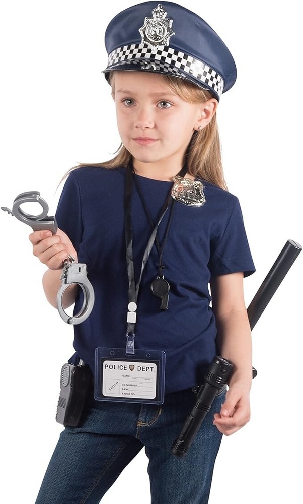 Kids Fireman and Policeman Role Play Costume Set, Firefighter Suit, Police Vest, Hats, Accessories DURABLE AND PERFECT FOR KIDS: The police costume for boys and girls is made from washable durable fabric suitable for an exciting toddler dress up police officer pretend playset IDEAL GIFT: This police officer costume for kids is useful for realistic, harmless, educational games which keeps children entertained & happy! Our inclusive policeman kids costume includes an 11 pcs police toy set. Ideal kids dress up clothes for play perfect for Christmas, Halloween, Birthday Party EXCELLENT QUALITY: Our kids police costume has the highest quality & has the safety standards your child deserve. This police costume for kids comes with kids police hat, police whistle, toy handcuffs, flashlight and walkie talkie w/ batteries, police baton, toy gun, police badge toy, name card and storage bag SUITABLE FOR KIDS AGES 3 & UP: This complete police dress up for boys and girls is made suitable for ages 3 and above. Make your little officer ecstatic with this toddler dress up clothes!