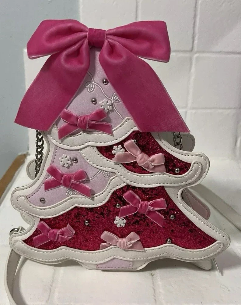 Betsey Johnson Kitsch XO Merry Christmas Tree Coquette Bow Glitter Crossbody Bag. Condition is New with tags. Shipped with USPS Ground Advantage.