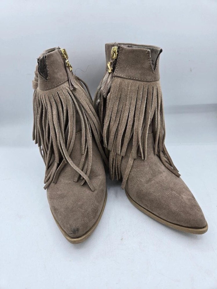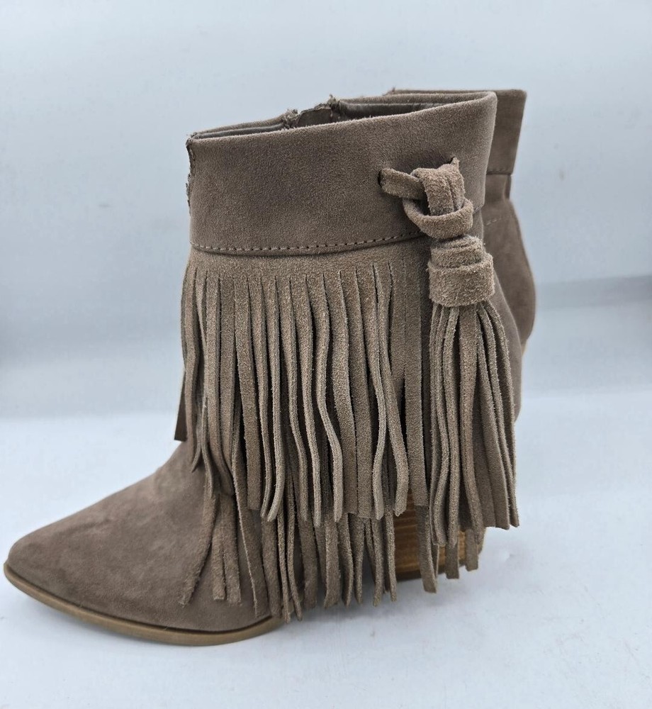 Betseyville Suede Fringe Ankle Boots Taupe Size 6 Bin G