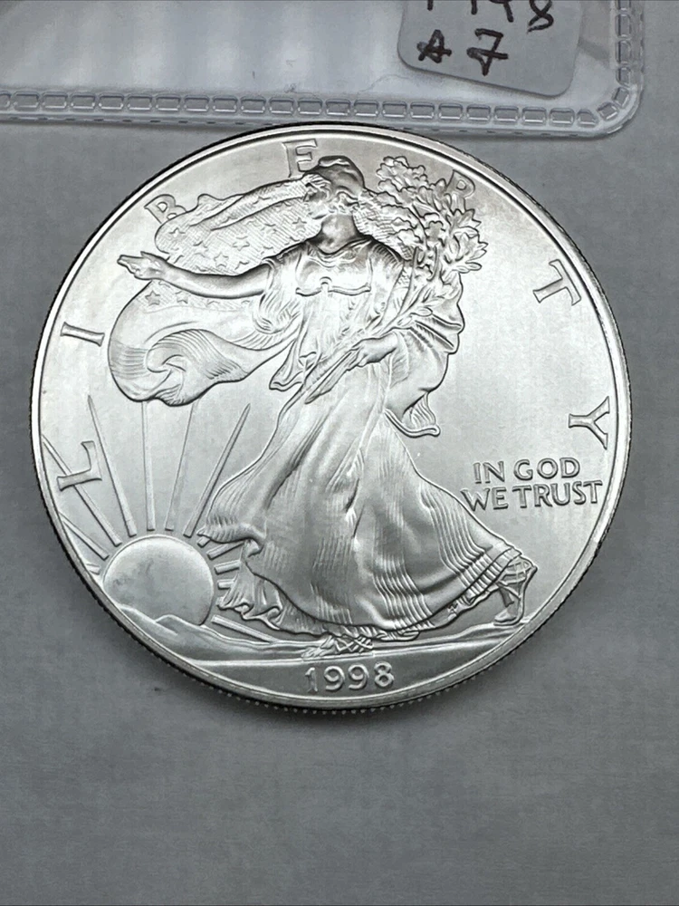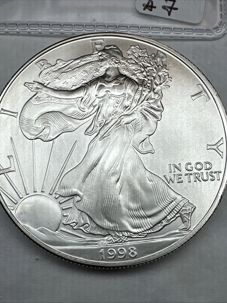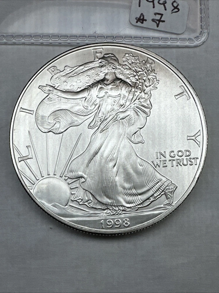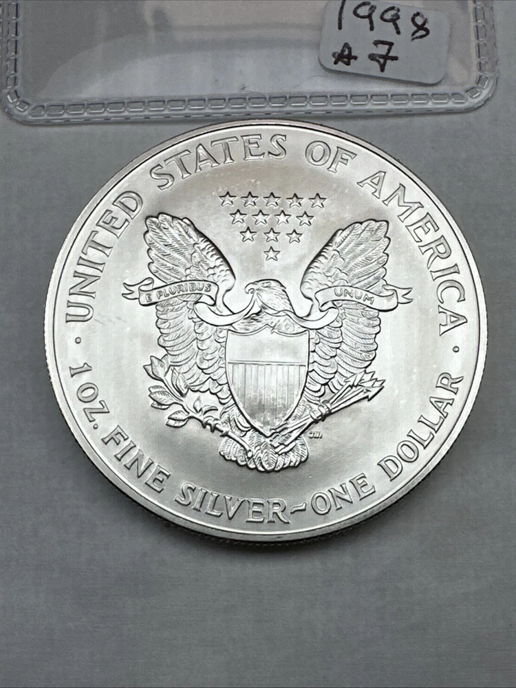 Total Precious Metal Content: 1oz Grade: Ungraded Composition: Silver Fineness: 0.999 Denomination: $1 Certification: Uncertified Mint Location: Philadelphia Coin: American Eagle Country/Region of Manufacture: United States Strike Type: Business Year: 1998 Precious Metal Content per Unit: 1 oz Circulated/Uncirculated: Uncirculated Brand/Mint: U.S. Mint