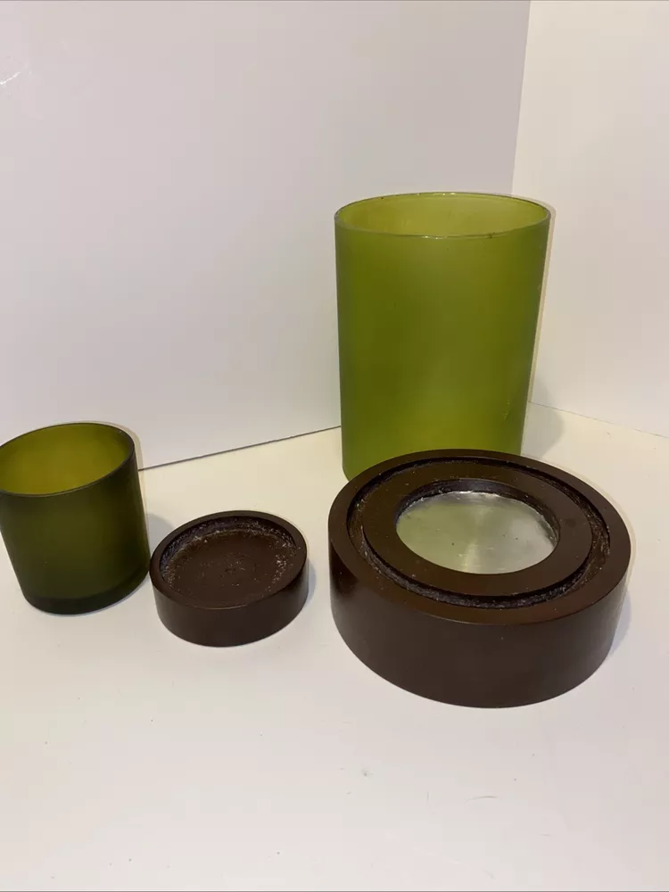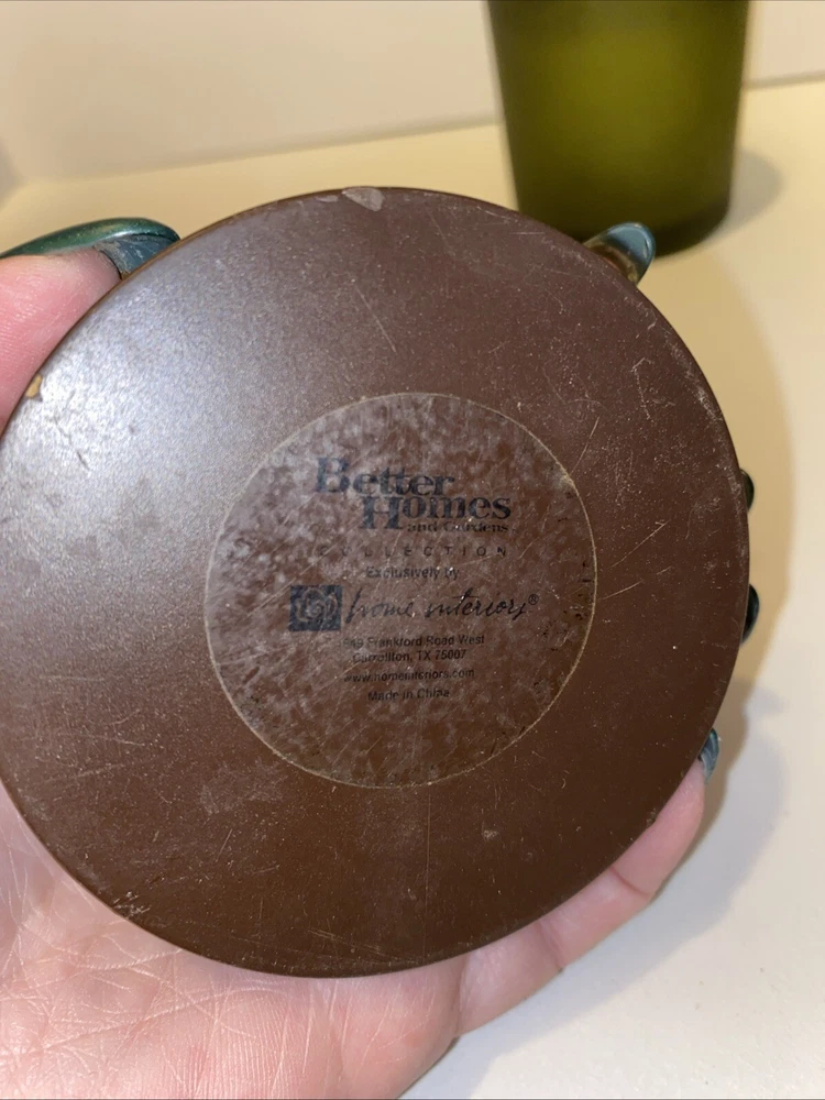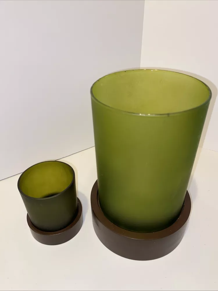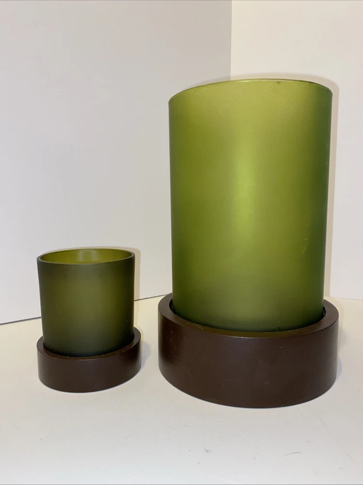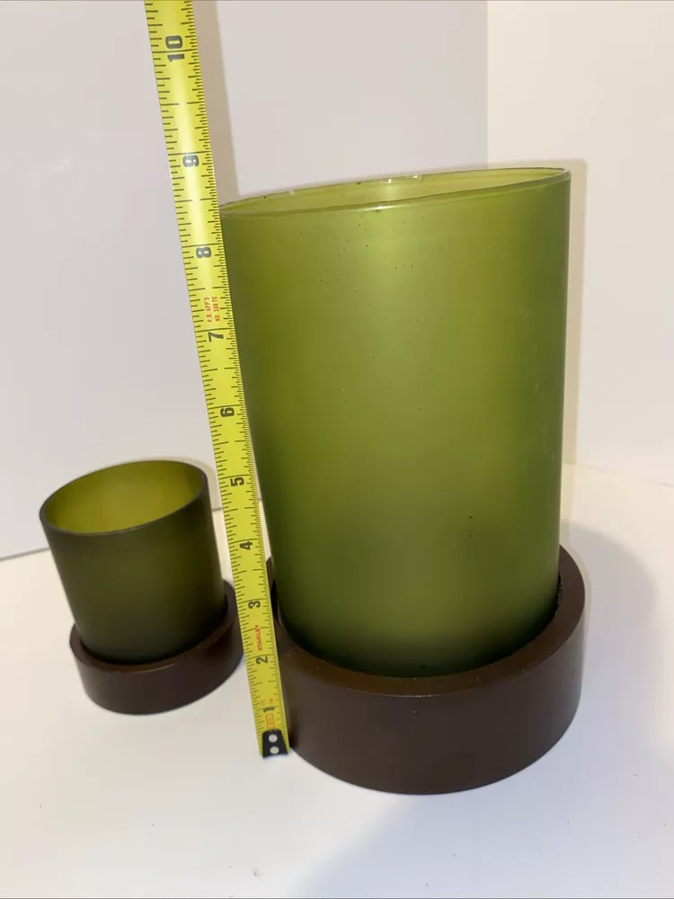 Better Homes And Gardens Green Candle Holder Wood Base Vintage Look