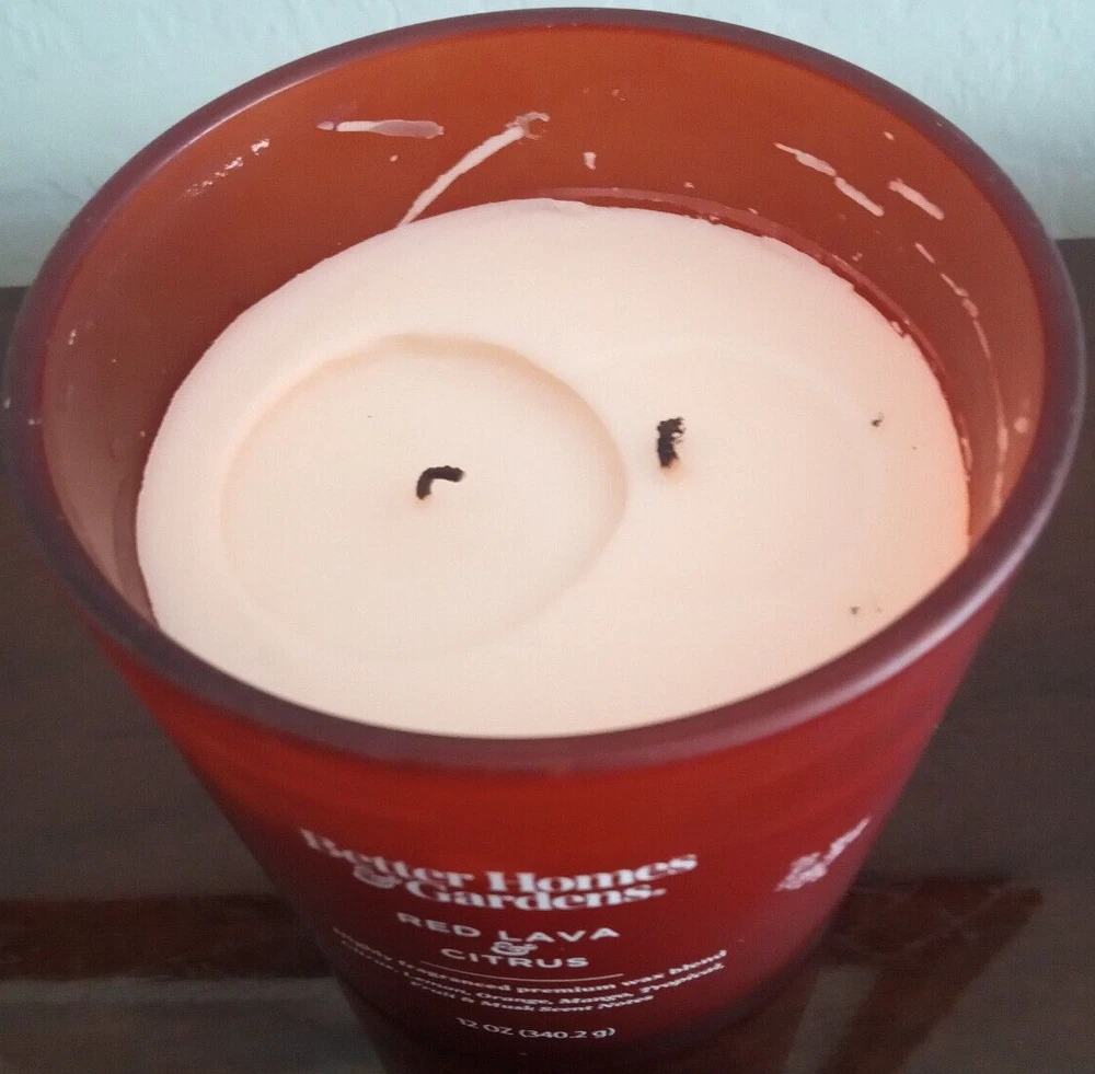 Better Homes & Gardens 12 oz Red Lava & Citrus Scent 2-Wick Jar Candle Glass Lid