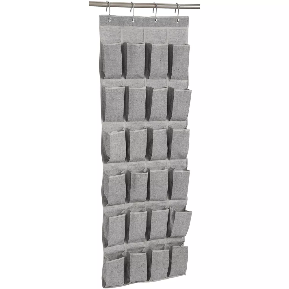 The Better Homes & Gardens 24-Pocket Over the Door Closet Shoe Organizer for adult can help you use virtually any interior door as potential storage space. This durably crafted fabric shoe organizer comes fully assembled and ready to hang on sturdy metal hooks and is perfect for bedroom, closet, and other doors, or can be hung securely off any closet rod. The organizer features 24 fold-out pockets to hold up to 12 pairs of your favorite footwear. The Better Homes & Gardens 24-Pocket Over the Door Closet Shoe Organizer is a great way to keep shoes, socks and other items organized, easily accessible, and off the floor. On Feb 15, 2025 at 00:32:49 PST, seller added the following information: