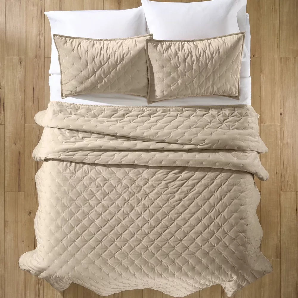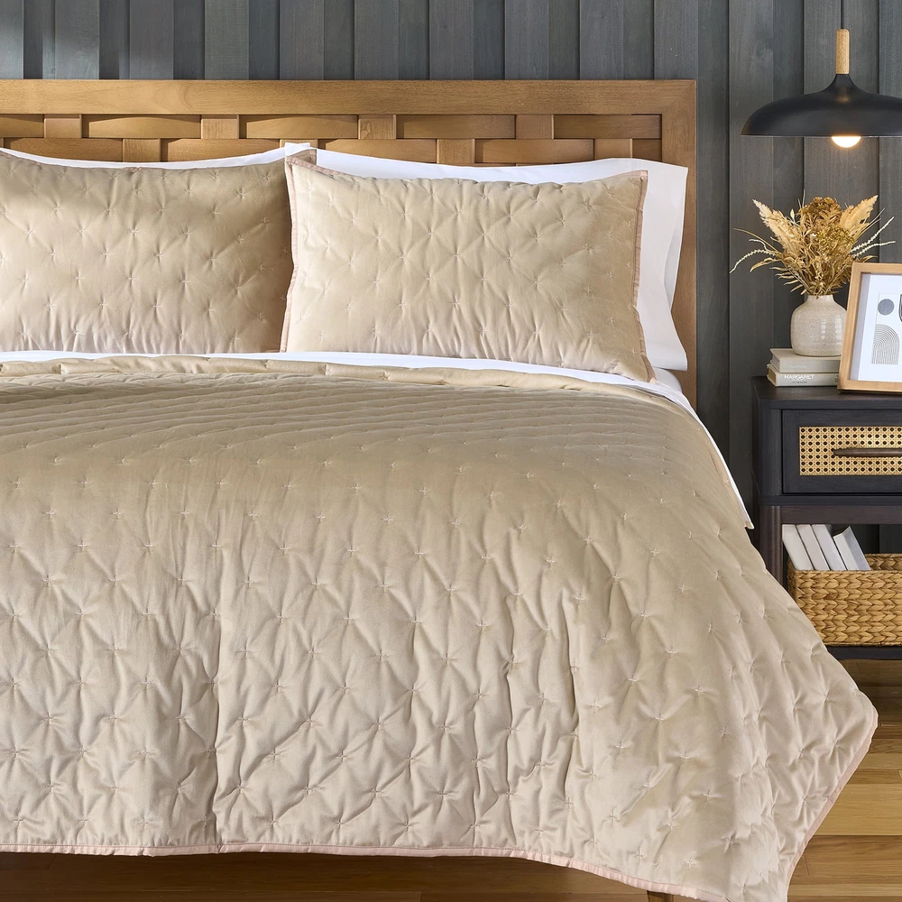 Soft, luxurious Better Homes & Gardens Embroidered Velvet 2-Pack Standard Shams, in Tan will make your bedroom comfortable and cozy. Standard Sham size 20 inches x 26 inches + .5inch flange. Quilts are available in Full/Queen and King sizes. Quilts and shams sold separately and individually. All Ages. Soft, luxurious Better Homes & Gardens Embroidered Velvet 2-Pack Standard Shams, in Tan will make your bedroom comfortable and cozy. Standard Sham size 20 inches x 26 inches + .5inch flange. Quilts are available in Full/Queen and King sizes. Quilts and shams sold separately and individually. All Ages. On Feb 15, 2025 at 00:03:02 PST, seller added the following information: