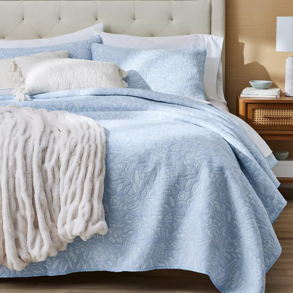 Complete your Bedding ensemble with the Floral Matelassé Standard shams with the Blue Cotton/Polyester reverse. This matelassé design, with a stylized floral, has a rich surface texture. The Shams feature a super soft brushed polyester reverse with tie closures. Combine with the Better Homes & Gardens Blue Floral Matelassé Quilt (sold separately) to create a cohesive bedding set to sprawl out on. The shams have back tie closures. Available colors in Blue, White, Rose. Imported China. For Adult, Senior and Teen On Feb 16, 2025 at 19:01:01 PST, seller added the following information: