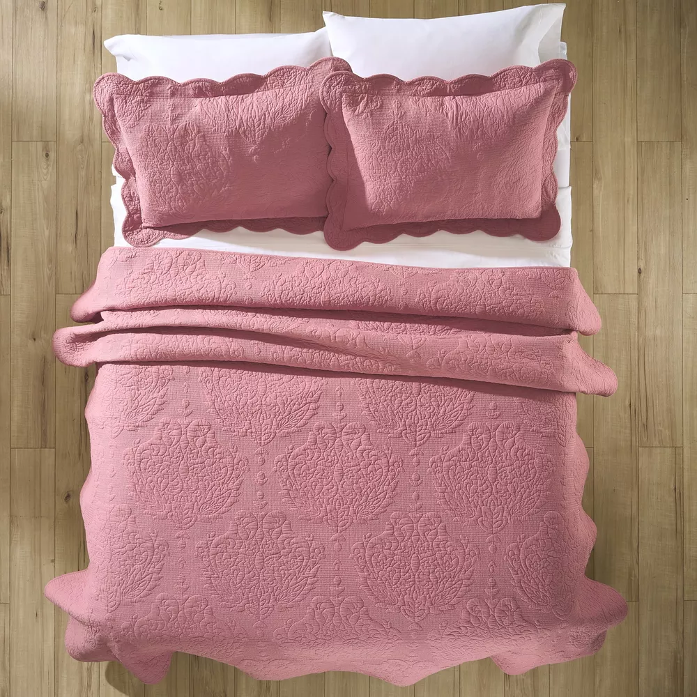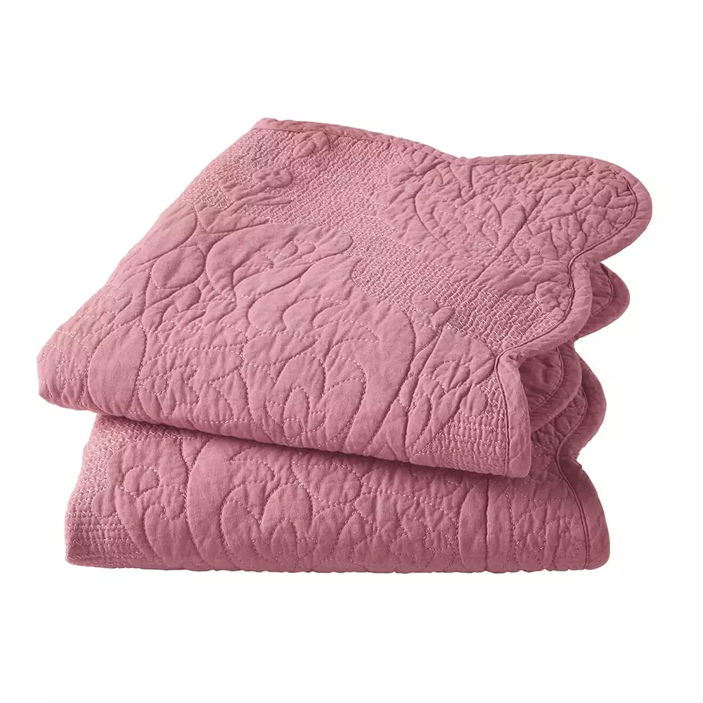 Textured and scalloped the Better Homes & Gardens Paisley Medallion Cotton Standard Sham, Rose. The paisley medallion quilting pattern looks sophisticated and creates a texture on the surface. Shams have a center opening. Standard Sham size 20 inches x 26 inches + .5inch flange. Quilts are available in Full/Queen and King sizes. Quilts and shams sold separately and individually. All Ages. Better Homes & Gardens Rose Paisley Medallion Cotton Pillow Shams, Machine Washable (2 Count) Standard Sham size: 20 inches x 26 inches with a 0.5 inch scalloped flange edge Features a beautiful paisley medallion embroidery design Machine washable for easy care and maintenance Suitable for all age groups Enhances the aesthetic of any bedding set with its elegant design