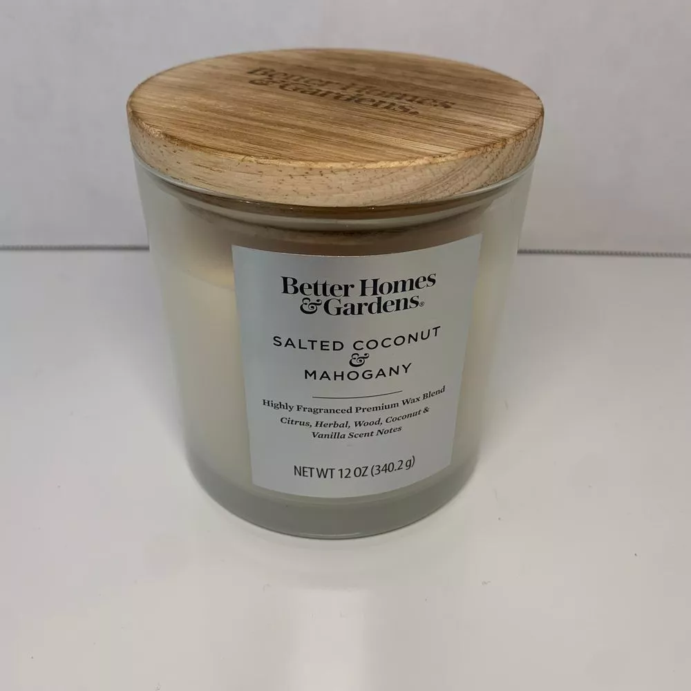 Better Homes and Gardens Salted Coconut and Mahogany Two Wick Candle NEW