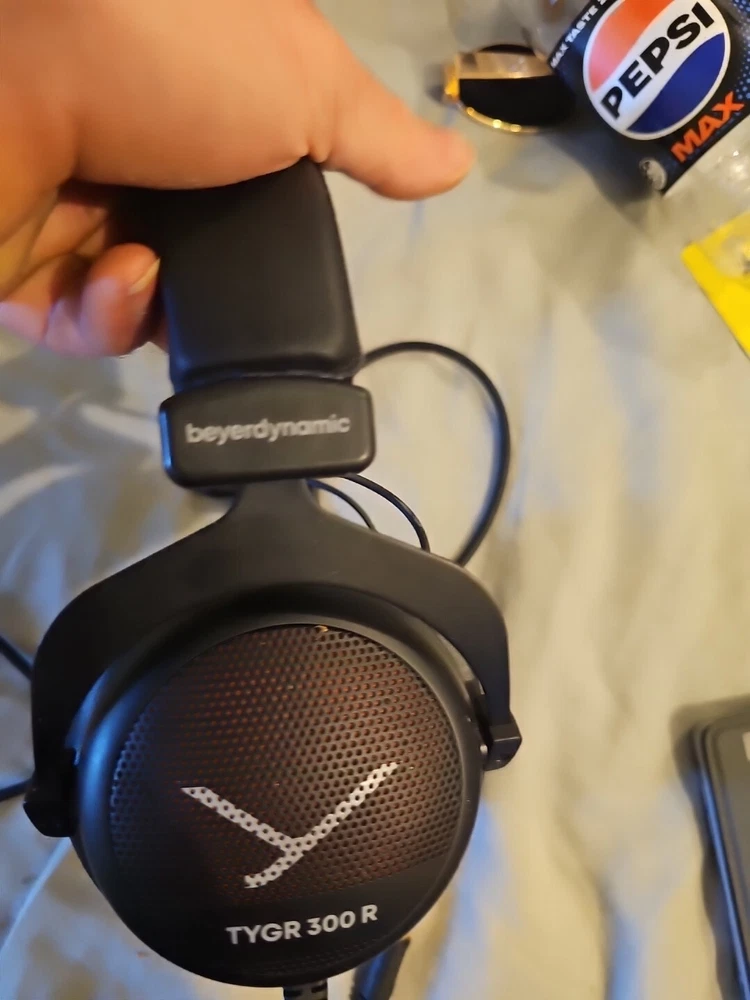 Photos are of real item. Please see before buying (but it's in great condition). These headphones were designed for gaming. By that, I mean they were designed to have a very deep and wide soundstage, which integrates brilliantly with both surround sound technology (dolby/dts and hardware solutions line Sennheiser epos and soundblaster, and of course in-game surround sound engines for my fellow fans of Thief and OG Deus Ex. Great for gaming and live monitoring, the Beyerdynamic Tygr 300 R headphones deliver ultra deep soundstage with an adjustable headband for a comfortable fit. With a sleek black design, these over-the-ear headphones feature a 6.35 mm and 3.5mm jack connectivity options, making them versatile for various audio devices. Made by the renowned brand beyerdynamic, these used headphones are in excellent condition and ready to enhance your audio experience.