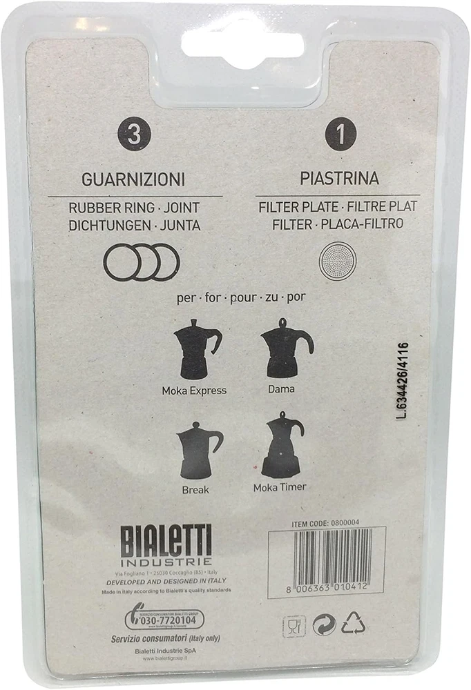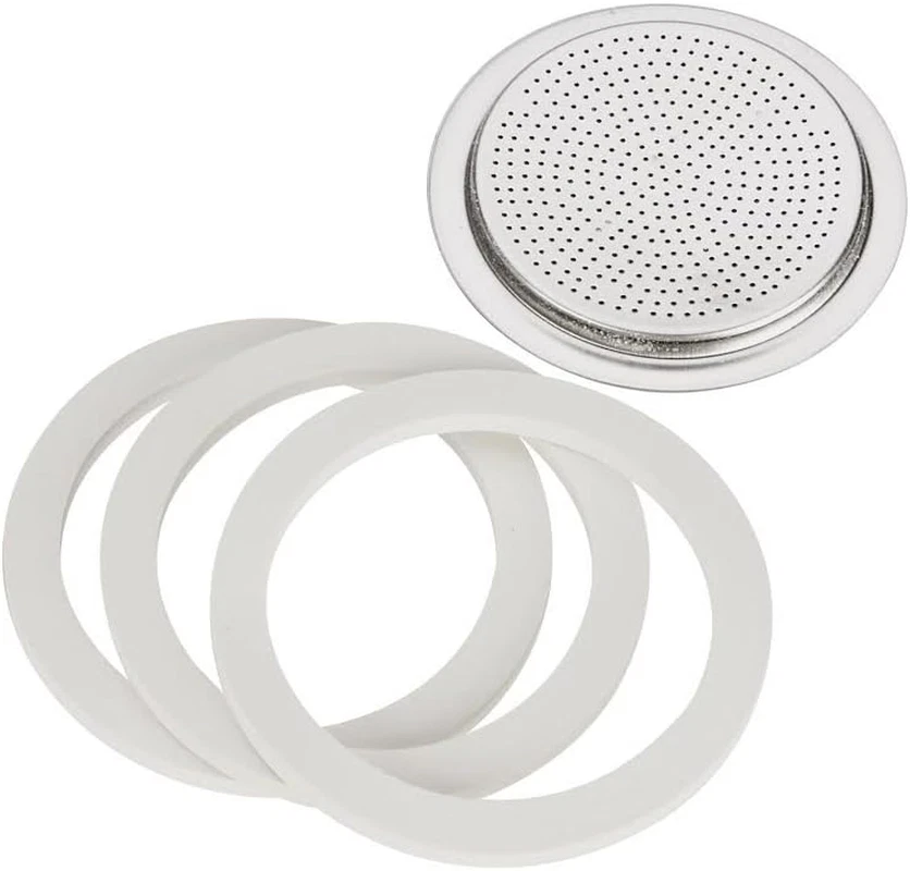 Store New Arrivals Add to Favorite View Feedback Contact Bialetti Moka Express 6 Cup Replacement Filter and 3 Gaskets , White Description Item model number 06601 Unit Count 1.0 Count Number of Items 1 Color Replacement Gasket Product Dimensions 2.83 x 2.83 x 0.12 inches Global Trade Identification Number 08006363010412 Coffee Maker Type Moka Pot Item Weight 0.4 ounces Operation Mode Manual Human Interface Input Buttons Capacity 6 Cups Material Stainless Steel Filter Type Reusable Item Weight 1134 g Wattage 230 watts Is Discontinued By Manufacturer No Brand Bialetti Included Components Filter Fits the 6-Cup Moka Express Includes 3 gaskets and 1 filter Outside Diameter 2 7/8" Authentic Bialetti Parts Satisfaction Guarantee Replace the gasket/filter of your espresso machine with this replacement gasket and filter from Bialetti. Includes 3 replacement gaskets and one replacement stainless steel filter screen. Outside diameter is 2.5-Inch and fits 6-cup Moka espresso machine. Hand wash recommended for best care. Bialetti is the world's most recognized and beloved Italian coffee company. Bialetti coffee makers have become iconic and has allowed millions of consumers to enjoy great Italian coffee that once was only available in cafes and restaurants. Bialetti's passion remains in making superb coffee simple. ABOUT US We offer the best prices around on high quality products. Our E-store includes media such as books, movies, music and games while offering electronics, toys, sporting apparel, clothing, tools, general home, garden items and more. SHIPPING We are always working hard to ensure your package arrives as soon as possible. Please understand that some factors like weather, high postal traffic, and the performance of shipping companies are outside of our control. We offer free shipping to the lower 48 states and ship within 2 business days of payment, usually sooner. We do not accept P.O. Boxes. Please provide a physical address. RETURNS We offer a 30-Day Return Policy on items which you are not completely satisfied with. You have the option for a full-refund or an exchange of the item. No returns are available on items shipped outside of the USA. PAYMENT We accept PayPal. CONTACT US This page content is yet to come Please ad us to your favorite seller and visit again later Thank You CUSTOMER SATISFACTION We try our very best to make sure every customer is completely satisfied. If there's a problem, message us! We're happy to help.