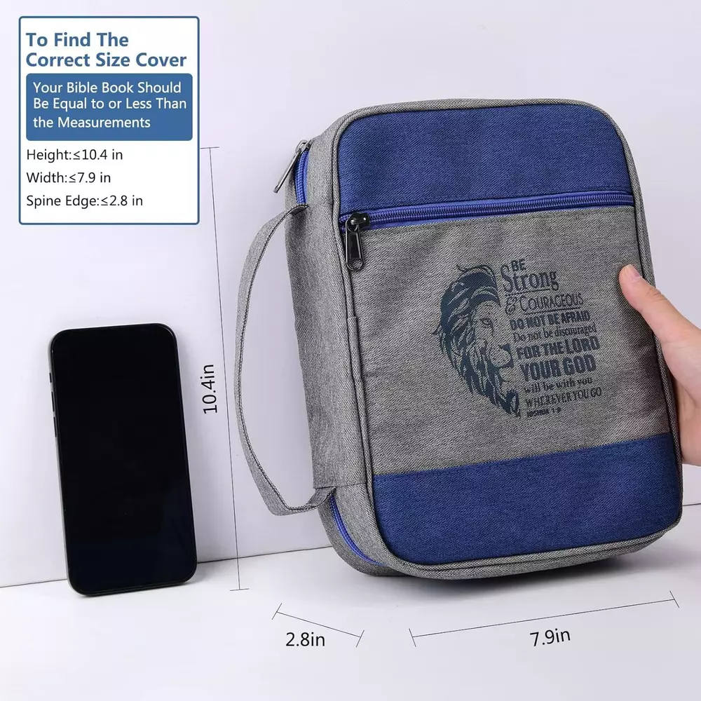 Fast Shipping Great Customer Support Satisfaction Guaranteed DESCRIPTION Shipping Shipping Shipping All domestic packages are shipped for Free (Unless other shipping method was selected during the checkout) Most items ship and arrive much sooner than the estimate delivery date. Usually within 2-3 days from payment. However, we have longer estimates to compensate for the occasional delay or supply chain breakdown. We do not accept P.O. BOXES - PLEASE PROVIDE A PHYSICAL ADDRESS Return Return Return In the event that you would like to return your purchase, we allow returns that are processed within the defined return date (the return date is to be found in the return policy/shipping and handling section) Please contact us for a return authorization and the return shipping address. Payment Payment Payment PayPal is our preferred method of payments it's the quickest, easiest and most secure way to pay for your goods or services online. PayPal offers buyer and seller protection should there be a problem. If you do not have a PayPal account, to get started and buy your first item with us is very easy. Simply click on the 'Buy It Now' button and follow the eBay checkout steps. Select PayPal as the payment method you then will be given the chance to enter your card details in to PayPal's secure checkout in order to pay for your order. Once the payment has been made, you will then be given the opportunity to make your own PayPal account to make paying for your items in the future very easy. Should there be a problem with payment please do let us know. Feedback Feedback Feedback Customer satisfaction is very important to us. If you have any problem with your order,please contact us and we will do our best to make you satisfied, please do not leave a negative feedback before we resolve your problem. We guarantee that your issue will be solved quickly. As long as you are happy with your purchase of , please leave us a positive feedback. Your feedback is very important to us it affects our search placement on eBay. We will leave a positive feedback for you in return automatically once we receive your feedback. Contact Us Contact Us Contact Us If you have any queries, please contact us via ebay. We usually respond within 24 hours on weekdays. Thank you for visiting our ebay store! ✅ MULTI-FUNCTION & PROTECT YOUR BIBLE: Secure zipper closure ensures your Bible, book, iPad and other important belongings stays clean and safe inside. Inner and back pockets hold your notebook, pens and additional notes. The interior pen loop secures your pen when not in use. The marking ribbons bookmark help you keep track of where you left off. Convenient carry handle makes it easy to travel to church or Bible study. ✅ Unique & Durable: The lion pattern with encouraging scripture is uniquely designed by Faithful Hers. Our bible covers is made of high-quality POLY-canvas fabric and smooth metal zippers. This Bible carrying case is lightweight, durable, easy to carry, and easy to clean. The bible bag can withstand daily use, ensuring that it will last for years to come. ✅ BIBLE COVERS SET: This bible bag set contains 1 bible case for men and 6 highlighters. It’s an wonderful gift for men, boys, father, Grandpa, husband, boyfriend, or any people you love on Christmas and Thanksgiving Day. ✅ Colorful Double-Ended Pen: Includes 12 pastel highlighters: 1 yellow, 1 orange, 1 pink, 1 purple, 1 blue, and 1 green. It's perfect for highlighting your scriptures, notes, journals, and books in school, college, home, office and travel diary. ✅ LARGE SIZE BIBLE COVER: This bible book case is 10.4"x7.9"x2.8 for standard Bible and large Bible. The durable duty front and back cover is great for heavy Bible books, Fit mostly ESV, KJV, CSB Study Bible. Please make sure your Bible is smaller than it. We highly recommend that you measure your Bible carefully to ensure the best fit. Bible Cover for Men Church Bag Bible Study Book Case with Handle, Zipper and Pockets Plus Highlighter Set Gift Fits The multi-functional design of Faithful Hers bible cover case ensures that you always have everything you need on hand. (1) This bible cover is very lightweight and has a strong handle. You can carry it to churches, schools, libraries, and study rooms at any time for your Bible study, worship, or pilgrimage. (2) Secure zipper closure ensures your Bible stays clean and safe inside. (3) The ample interior pockets provide space to store Bible, notebooks, pens, highlighters, bookmarks, prayer journals, church bulletins and prayer cards, etc. (4) An interior pen loop secures pens or highlighters when not in use. (5) While marking ribbons and bookmark help keep track of where you left off in your Bible. (6) Back pocket allows for more storage. (7) Comes with 6 highlighters that you can use to record your ideas and inspiration. The stylish design with its lion pattern and scripture by Faithful Hers adds an uplifting message of hope and encouragement to your daily routine. Multiple Use: This Bible case is not only functional and stylish, but it is also highly versatile. It can be used as a purse-style handbag, tote bag, makeup bag, book case/cover, or as a protective cover for your iPad. It is available in a variety of bright and fun colors, making it a perfect gift for your family and friends, especially on holiday season. What will you get? Men Bible Covers *1 Highlighter *6(1 yellow, 1 orange, 1 pink, 1 purple, 1 blue, and 1 green.) Bible Cover Case Set for Men with Highlighter and Pockets, Blue 10.4"x7.9" Click here to see description Fast Shipping Great Customer Support Satisfaction Guaranteed DESCRIPTION Shipping All domestic packages are shipped for Free (Unless other shipping method was selected during the checkout) We ship within two business days of payment, usually sooner Standard FREE shipping takes between 3-5 business days Expedited shipping takes between 2-3 business days Overnight shipping takes between 1-2 business days We do not acc