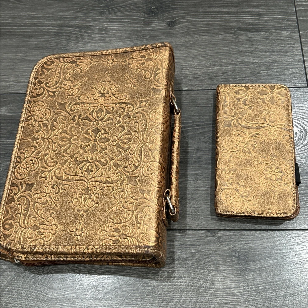 Bible Cover Case for Women 11"x9"x3" zipper Organizer Bag Tapestry Floral Design