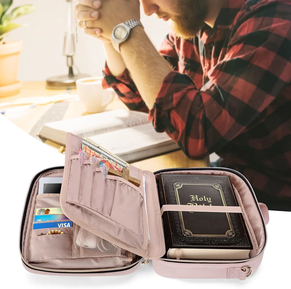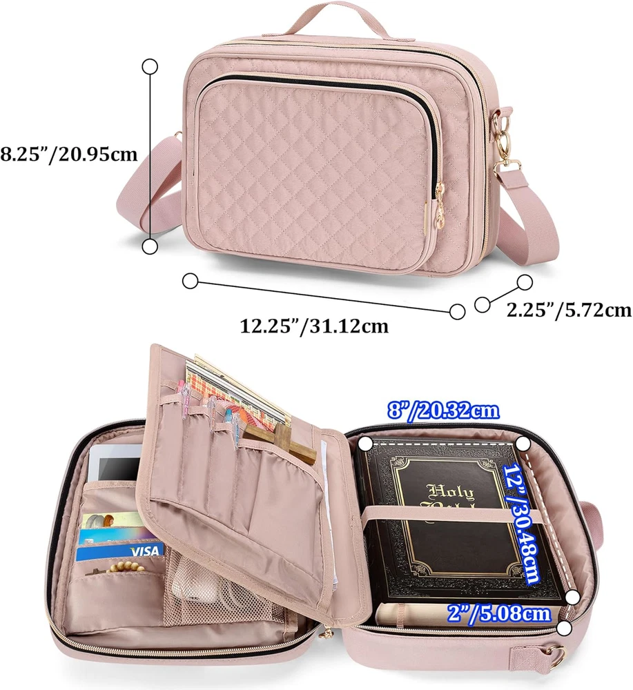 Fast Shipping Great Customer Support Satisfaction Guaranteed DESCRIPTION Shipping Shipping Shipping All domestic packages are shipped for Free (Unless other shipping method was selected during the checkout) Most items ship and arrive much sooner than the estimate delivery date. Usually within 2-3 days from payment. However, we have longer estimates to compensate for the occasional delay or supply chain breakdown. We do not accept P.O. BOXES - PLEASE PROVIDE A PHYSICAL ADDRESS Return Return Return In the event that you would like to return your purchase, we allow returns that are processed within the defined return date (the return date is to be found in the return policy/shipping and handling section) Please contact us for a return authorization and the return shipping address. Payment Payment Payment PayPal is our preferred method of payments it's the quickest, easiest and most secure way to pay for your goods or services online. PayPal offers buyer and seller protection should there be a problem. If you do not have a PayPal account, to get started and buy your first item with us is very easy. Simply click on the 'Buy It Now' button and follow the eBay checkout steps. Select PayPal as the payment method you then will be given the chance to enter your card details in to PayPal's secure checkout in order to pay for your order. Once the payment has been made, you will then be given the opportunity to make your own PayPal account to make paying for your items in the future very easy. Should there be a problem with payment please do let us know. Feedback Feedback Feedback Customer satisfaction is very important to us. If you have any problem with your order,please contact us and we will do our best to make you satisfied, please do not leave a negative feedback before we resolve your problem. We guarantee that your issue will be solved quickly. As long as you are happy with your purchase of , please leave us a positive feedback. Your feedback is very important to us it affects our search placement on eBay. We will leave a positive feedback for you in return automatically once we receive your feedback. Contact Us Contact Us Contact Us If you have any queries, please contact us via ebay. We usually respond within 24 hours on weekdays. Thank you for visiting our ebay store! Large Capacity: This Bible bag protector can comfortably accommodate your bible book(Fit for book up to 12" x 2" x 8"), Front zipper pockets and extra inner pockets allow you to store additional items such as notebooks, ipads(Up to 11") and bookmarks. 4 cards slots for your differents cards. Stay organized and carry everything you need in one bag. SMART INTERNAL DESIGN: This multi-functional bible book carring case have 1 removable panel inside with pen slots, which can be removed easily as needed by the hook and loop fastener design. 15 Pen slots easy to find and keep your pens in place. EASY TO CARRY: L12.25"*W8.25"*H2.25". The sturdy handles and adjustable shoulder strap make it easy to transport your bible comfortably, whether you are traveling, going to church, or studying in a coffee shop. IDEAL GIFT: The Bible cover bag looks stylish and is soft to the touch. It can be used as book case/cover,journal supplies organizer, pen case, stationery pencil bag, purse style handbag. It is an wonderful gift for your family, teachers and friends on Easter, Christmas and Halloween. High-Quality: Made with sturdy, water-resistant and padded lining materials, This bible cover bag offers long-lasting protection for your bible against dust, scratches, and other damage. Smooth zippper closure to keep your scripture put in and out easily. Bible Cover for Men Women Large Quilted Carrying Case with Shoulder Strap Pink Click here to see description Fast Shipping Great Customer Support Satisfaction Guaranteed DESCRIPTION Shipping All domestic packages are shipped for Free (Unless other shipping method was selected during the checkout) We ship within two business days of payment, usually sooner Standard FREE shipping takes between 3-5 business days Expedited shipping takes between 2-3 business days Overnight shipping takes between 1-2 business days We do not accept P.O. BOXES - PLEASE PROVIDE A PHYSICAL ADDRESS We Ship Globally using ebay's GSP, the item is sent to a logistic center in KY and shipped from there to the rest of the world. International customers are responsible for all duties and taxes Contact your local authority for questions related to the amount of duties or taxes you will be responsible for Return In the event that you would like to return your purchase, we allow returns that are processed within the defined return date (the return date is to be found in the return policy/shipping and handling section) Please contact us for a return authorization and the return shipping address. Please contact us for a Return Merchandise Authorization (RMA) number. We advise you to use a reputable carrier service when returning your goods. Please pack all returns appropriately. We ship globally Via eBay's global shipping program (GSP). Thus we don't cover returns for items shipped globally. Buyers returning such items will be refunded ONLY for the item's cost and not for the shipping. please check the Voltage information and make sure it matches the one in your country. In case it's not stated in the description, do ask us. Payment PayPal is our preferred method of payments it's the quickest, easiest and most secure way to pay for your goods or services online. PayPal offers buyer and seller protection should there be a problem. If you do not have a PayPal account, to get started and buy your first item with us is very easy. Simply click on the 'Buy It Now' button and follow the eBay checkout steps. Select PayPal as the payment method you then will be given the chance to enter your card details in to PayPal's secure checkout in order to pay for your order. Once the payment has been made, you will then be given the opportunity to make your 