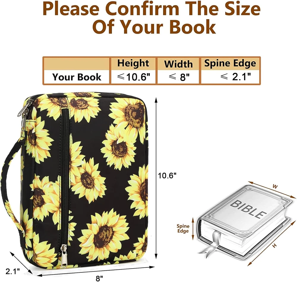 Fast Shipping Great Customer Support Satisfaction Guaranteed DESCRIPTION Shipping Shipping Shipping All domestic packages are shipped for Free (Unless other shipping method was selected during the checkout) Most items ship and arrive much sooner than the estimate delivery date. Usually within 2-3 days from payment. However, we have longer estimates to compensate for the occasional delay or supply chain breakdown. We do not accept P.O. BOXES - PLEASE PROVIDE A PHYSICAL ADDRESS Return Return Return In the event that you would like to return your purchase, we allow returns that are processed within the defined return date (the return date is to be found in the return policy/shipping and handling section) Please contact us for a return authorization and the return shipping address. Payment Payment Payment PayPal is our preferred method of payments it's the quickest, easiest and most secure way to pay for your goods or services online. PayPal offers buyer and seller protection should there be a problem. If you do not have a PayPal account, to get started and buy your first item with us is very easy. Simply click on the 'Buy It Now' button and follow the eBay checkout steps. Select PayPal as the payment method you then will be given the chance to enter your card details in to PayPal's secure checkout in order to pay for your order. Once the payment has been made, you will then be given the opportunity to make your own PayPal account to make paying for your items in the future very easy. Should there be a problem with payment please do let us know. Feedback Feedback Feedback Customer satisfaction is very important to us. If you have any problem with your order,please contact us and we will do our best to make you satisfied, please do not leave a negative feedback before we resolve your problem. We guarantee that your issue will be solved quickly. As long as you are happy with your purchase of , please leave us a positive feedback. Your feedback is very important to us it affects our search placement on eBay. We will leave a positive feedback for you in return automatically once we receive your feedback. Contact Us Contact Us Contact Us If you have any queries, please contact us via ebay. We usually respond within 24 hours on weekdays. Thank you for visiting our ebay store! High Quality: The Bible cover is made of water-resistant polyester (100% Eco-Material), soft and lightweight. Well made with high quality metal zipper, pockets inside the cover. This bible carrying bag can protect your bible from scuffing.Easy to clean polyester blend material,simply wipe with a damp cloth. Wonderful Organization Function: There are many pockets for storing stationery inside the Bible cover, allowing you to neatly store pens, bookmarks, stickers, notebooks, highlighters, and Ipad; the front pocket with a zipper on the outside can store your mobile phone or wallet. Large Space: Perfect for standard or smaller size Bible: 10.6" x 8" x 2.1". Can be an excellent Bible holder, journal case, paperback book cover, makeup cosmetic bag, tablet case, Bible study book bag, etc. The additional inner pockets allow you to store Bible highlighters, pens, prayer journals, church bulletins, sermon notes, prayer cards, notes or bookmarks. Portable & lightweight: This cover is very light and has a strong handle. You can carry it to churches, schools, libraries, study rooms at any time for your Bible study, worship, or pilgrimage. Perfect Gift: This bible bag makes wonderful gifts for your family and friends on Christmas and Halloween.【AFTER-SALE GUARANTEE】We guarantee 2 years protection for free from the date of its original purchase. ORDER NOW WITH NO RISK! Bible Cover, Carrying Book Case,Bible Bag, Bible Covers, Bible Holder, Bible Book Covers for Kids, Bible Cover Case Bible Cover for Women with Handle and Zippered Pocket - Sunflower Design Click here to see description Fast Shipping Great Customer Support Satisfaction Guaranteed DESCRIPTION Shipping All domestic packages are shipped for Free (Unless other shipping method was selected during the checkout) We ship within two business days of payment, usually sooner Standard FREE shipping takes between 3-5 business days Expedited shipping takes between 2-3 business days Overnight shipping takes between 1-2 business days We do not accept P.O. BOXES - PLEASE PROVIDE A PHYSICAL ADDRESS We Ship Globally using ebay's GSP, the item is sent to a logistic center in KY and shipped from there to the rest of the world. International customers are responsible for all duties and taxes Contact your local authority for questions related to the amount of duties or taxes you will be responsible for Return In the event that you would like to return your purchase, we allow returns that are processed within the defined return date (the return date is to be found in the return policy/shipping and handling section) Please contact us for a return authorization and the return shipping address. Please contact us for a Return Merchandise Authorization (RMA) number. We advise you to use a reputable carrier service when returning your goods. Please pack all returns appropriately. We ship globally Via eBay's global shipping program (GSP). Thus we don't cover returns for items shipped globally. Buyers returning such items will be refunded ONLY for the item's cost and not for the shipping. please check the Voltage information and make sure it matches the one in your country. In case it's not stated in the description, do ask us. Payment PayPal is our preferred method of payments it's the quickest, easiest and most secure way to pay for your goods or services online. PayPal offers buyer and seller protection should there be a problem. If you do not have a PayPal account, to get started and buy your first item with us is very easy. Simply click on the 'Buy It Now' button and follow the eBay checkout steps. Select PayPal as the payment method you then will be given the chance to enter your card details in 