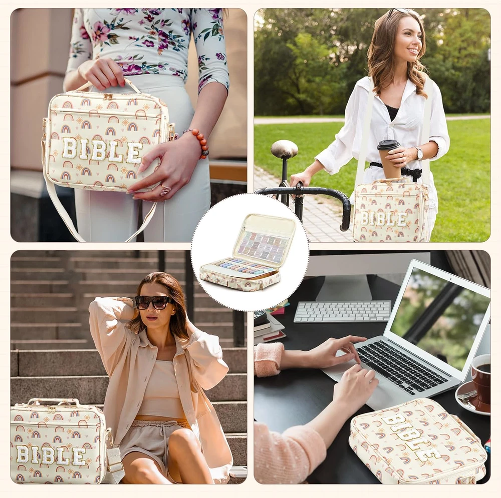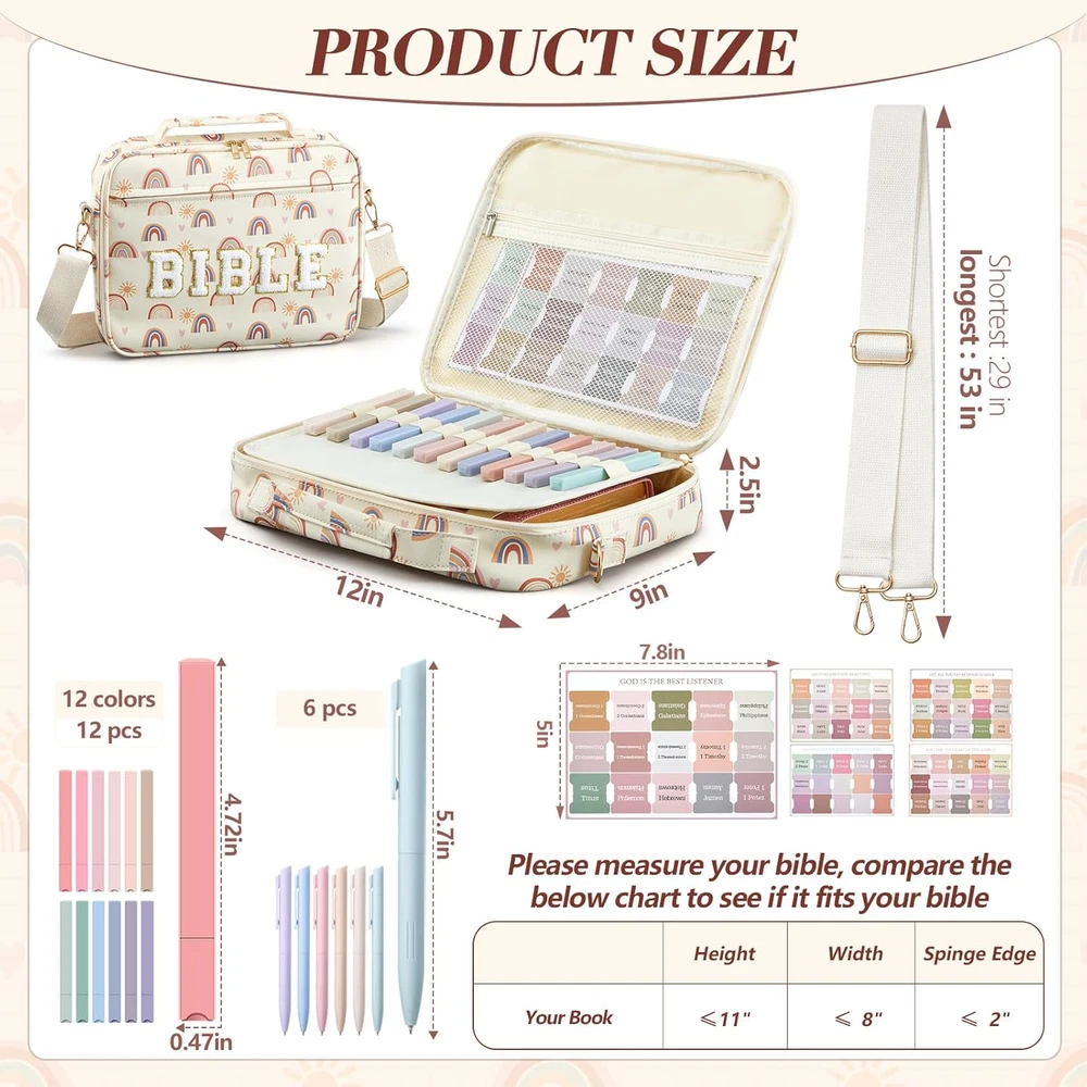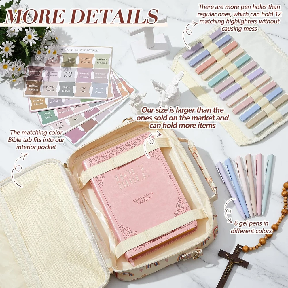 Fast Shipping Great Customer Support Satisfaction Guaranteed DESCRIPTION Shipping Shipping Shipping All domestic packages are shipped for Free (Unless other shipping method was selected during the checkout) Most items ship and arrive much sooner than the estimate delivery date. Usually within 2-3 days from payment. However, we have longer estimates to compensate for the occasional delay or supply chain breakdown. We do not accept P.O. BOXES - PLEASE PROVIDE A PHYSICAL ADDRESS Return Return Return In the event that you would like to return your purchase, we allow returns that are processed within the defined return date (the return date is to be found in the return policy/shipping and handling section) Please contact us for a return authorization and the return shipping address. Payment Payment Payment PayPal is our preferred method of payments it's the quickest, easiest and most secure way to pay for your goods or services online. PayPal offers buyer and seller protection should there be a problem. If you do not have a PayPal account, to get started and buy your first item with us is very easy. Simply click on the 'Buy It Now' button and follow the eBay checkout steps. Select PayPal as the payment method you then will be given the chance to enter your card details in to PayPal's secure checkout in order to pay for your order. Once the payment has been made, you will then be given the opportunity to make your own PayPal account to make paying for your items in the future very easy. Should there be a problem with payment please do let us know. Feedback Feedback Feedback Customer satisfaction is very important to us. If you have any problem with your order,please contact us and we will do our best to make you satisfied, please do not leave a negative feedback before we resolve your problem. We guarantee that your issue will be solved quickly. As long as you are happy with your purchase of , please leave us a positive feedback. Your feedback is very important to us it affects our search placement on eBay. We will leave a positive feedback for you in return automatically once we receive your feedback. Contact Us Contact Us Contact Us If you have any queries, please contact us via ebay. We usually respond within 24 hours on weekdays. Thank you for visiting our ebay store! Quality and Craftsmanship: experience the comfort of bible bag protection with our waterproof PU material bible cover; Crafted with a light color palette and featuring exquisite towel embroidery that adds a touch of class to your bible study; This Bible carrying case is about 12 x 9 x 2.5", Our size is larger than the ones sold on the market and can hold more items; it safeguards your sacred texts from wear and tear; Its sturdy handle and shoulder strap allow for ease of carriage Multipurpose Bible Organizer: our Bible cover isn't just beautiful; It's functional too; Boasting a front pocket and several interior organization pockets, it ensures your bible study supplies are always well arranged; The zippered pockets provide an extra layer of protection for your items, and it's easy to carry, thanks to the shoulder strap and handle Ideal Bible Study Accessories: nothing enhances bible study like the right tools; We include 12 assorted color highlighters and 6 color core manual pens, suitable for penning down your notes and thoughts without smearing or soiling your hands; These writing tools offer a smooth, elegant writing experience; Also, they're compact and easy to store in the inner pocket of the bible bag Convenient Labeling: with the set of light color Bible labels included in our kit, finding books and passages becomes a breeze; The tabs feature clear, easy to read fonts and vibrant printing that simplifies your bible referencing tasks Stylish Bible Carrying Case and Organization Kit: this bible organizer kit is not just a tool; It's a statement of style and quality; Suitable for use in various occasions, from bible study sessions to travel and day to day use; With its wide range of accessories and sturdy design, the kit makes a thoughtful gift for family, friends, colleagues, students, and teachers on holidays and special occasions; Spread the joy of an organized, stylish bible study experience Bible Cover with Bear Gel Pens Highlighters Shoulder Strap Gift for Women Click here to see description Fast Shipping Great Customer Support Satisfaction Guaranteed DESCRIPTION Shipping All domestic packages are shipped for Free (Unless other shipping method was selected during the checkout) We ship within two business days of payment, usually sooner Standard FREE shipping takes between 3-5 business days Expedited shipping takes between 2-3 business days Overnight shipping takes between 1-2 business days We do not accept P.O. BOXES - PLEASE PROVIDE A PHYSICAL ADDRESS We Ship Globally using ebay's GSP, the item is sent to a logistic center in KY and shipped from there to the rest of the world. International customers are responsible for all duties and taxes Contact your local authority for questions related to the amount of duties or taxes you will be responsible for Return In the event that you would like to return your purchase, we allow returns that are processed within the defined return date (the return date is to be found in the return policy/shipping and handling section) Please contact us for a return authorization and the return shipping address. Please contact us for a Return Merchandise Authorization (RMA) number. We advise you to use a reputable carrier service when returning your goods. Please pack all returns appropriately. We ship globally Via eBay's global shipping program (GSP). Thus we don't cover returns for items shipped globally. Buyers returning such items will be refunded ONLY for the item's cost and not for the shipping. please check the Voltage information and make sure it matches the one in your country. In case it's not stated in the description, do ask us. Payment PayPal is our preferred method of paymen