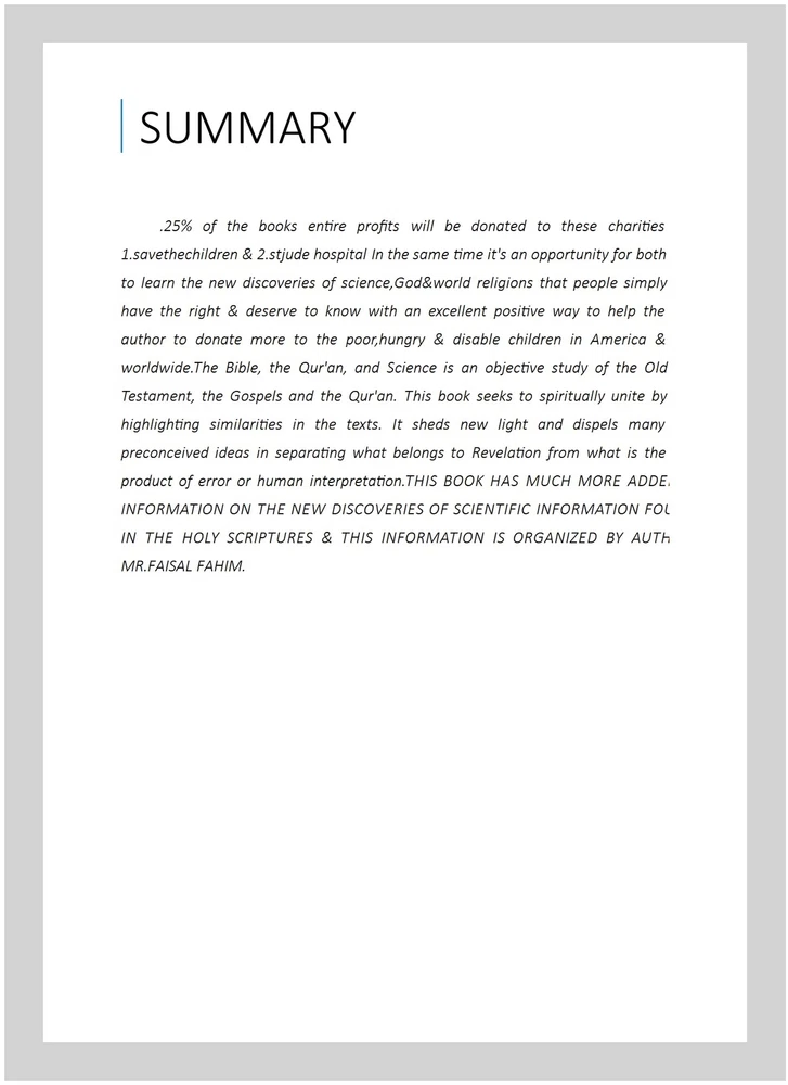 Bible, the Qu'ran and Science : The Holy Scriptures Examined in the Light of Modern Knowledge, Paperback by Bucaille, Maurice, ISBN 1492121150, ISBN-13 9781492121152, Like New Used, Free shipping in the US .25% of ths entire profits will be donated to these charities & hospital In the same time it's an opportunity for both to learn the new discoveries of science,God&world religions that people simply have the right & deserve to know with an excellent positive way to help the author to donate more to the poor,hungry & disable children in America & Bible, the Qur'an, and Science is an objective study of the Old Testament, the Gospels and the Qur'an. This book seeks to spiritually unite by highlighting similarities in the texts. It sheds new light and dispels many preconceived ideas in separating what belongs to Revelation from what is the product of error or human BOOK HAS MUCH MORE ADDED INFORMATION ON THE NEW DISCOVERIES OF SCIENTIFIC INFORMATION FOUND IN THE HOLY SCRIPTURES & THIS INFORMATION IS ORGANIZED BY AUTHOR FAHIM.