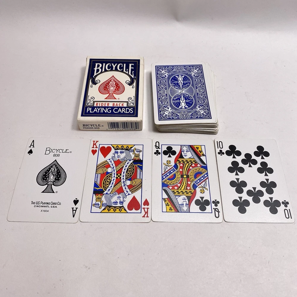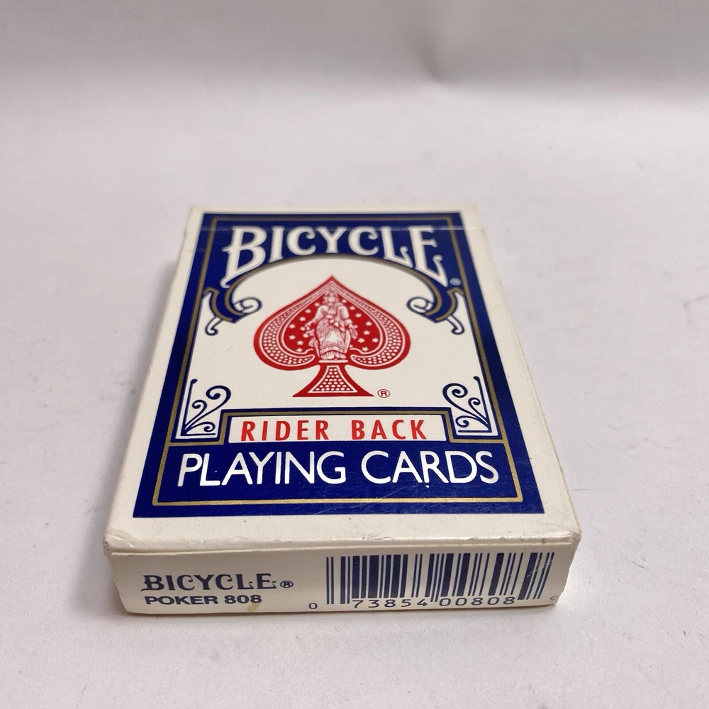 Age:Modern (1970-Now)Brand:BicycleTheme:rider backUPC:073854008089Seller Notes:“Complete 52 card deck with no jokers. Photos show the actual items you will receive.”gtin13:073854008089Type:808 Poker Blue PackCountry/Region of Manufacture:United States