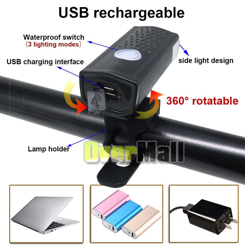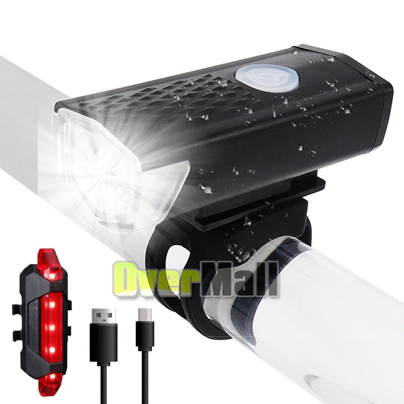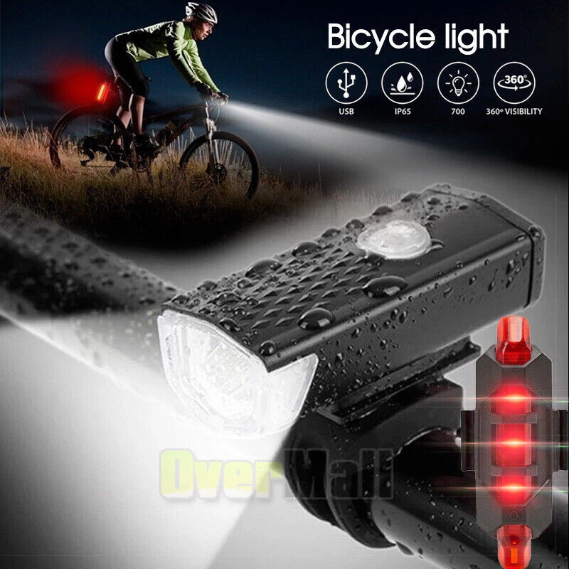 Bicycle Bike LED Front & Rear Headlight USB Rechargeable Cycling Light Lamp Kits Rechargeable Bicycle Bike Headlight Rear Taillight Set USB LED Light Front Lamp BEST CUSTOMER SERVICE ON OUR sale2015express EBAY STORE↓ ↓ ↓ 〓SHIP From US Local Stock 〓FAST & Free, 1-6 Days Arrival 〓FREE Return, Seller Pay!! 〓LIFETIME Money Back Guarantee 〓LIFETIME Free Replacement Guarantee 〓LIFETIME Warranty 〓QUICKLY Reply within 24 Working Hours 〓 MOST orders ship within 1 business day with Tracking Number 〓 ANY PROBLEM please email us before feedback, thanks! Add our listing to Watchlist Or Add to Cart , you will get more discount!!! Features: *Super bright bike lights:Includes Front Cycling Light and Back Light *Front light has 3 modes-High/Low/Flashing,torch light with bike clamp,Button switch. Special designed light beam produce powerful lumen and generates a brilliant floodlight for Large area without wasting energy *Long running time-It can work 3 hours in high mode, 5 hours in low mode,and 12 hours in strobe mode, so you don’t have to worry about it running out on the way. *Back Light has 3 modes-Slide-Flashing-Always on *USB rechargeable-Built in Rechargeable Li-ion battery, easily charged from your computer or any device with a USB port. *Safety set for riding at night.Both a headlight and a tail light making your bicycle stand out with unmatched 360º visibility so you and your loved ones are safer in any low light conditions. *Durable and high quality bike lights-Durable aluminum body,shock-resistance endure rough handling. Do not be afraid of the rough road! *Easy to install with no tool required-The flashlight is easy to install on the bicycle with the adjustable bracket(3 small holes to adjust) without detach the mount from the bike. *IP65-rated water resistant and designed for use in heavy rain and outside riding. **Mini design ,lightweight,space-saving. Specifications: Battery:1200mAh for Headlight,180mAh for Taillight Charging time:3 hours for Headlight,2 hours for Taillight Materials:Aluminum alloy+Rubber Color:Black headlight+Red tail light Dimension: Front light:6.5*2.7*2.3 Back light:7.5*2.2*1.8 Package includes: 1x Front Light 1x Back Light 1x Black USB Cable 1x White USB Cable 2x O-Rings Payment Shipping About Feedback About us Contact us Payment 1. Paypal Accept. 2. Payment should be sent within 4 (FOUR) days auction closing. Or unpaid dispute will be filed for closing auction. Shipping 1. Fast shipping from NJ, US. 2. Shipping available time: Mon. - Fri. exclude holidays 3. The orders will be handled in 24 hours after payment got. Ship to Paypal Address ONLY. About Feedback If you are dissatisfied for any reason, please do not be quick to leave negative/neutral feedback. We work hard to make sure EVERY CUSTOMER 100% SATISFIED and resolve any problem for you and always leave positive feedback to all our customers. About us 1. Welcome to OverMall, We pride ourselves on providing the outstanding service and high qualtiy products, make our customer feel confident buying online. 2. For the most US address, we offer free standard shipping . 3. By shopping with us, you can guarantee the latest technology for the best possible price. Contact us You are welcomed to contact me for any question. I will reply your email in about 24HRS in business days. On Nov 12, 2024 at 20:18:58 PST, seller added the following information: