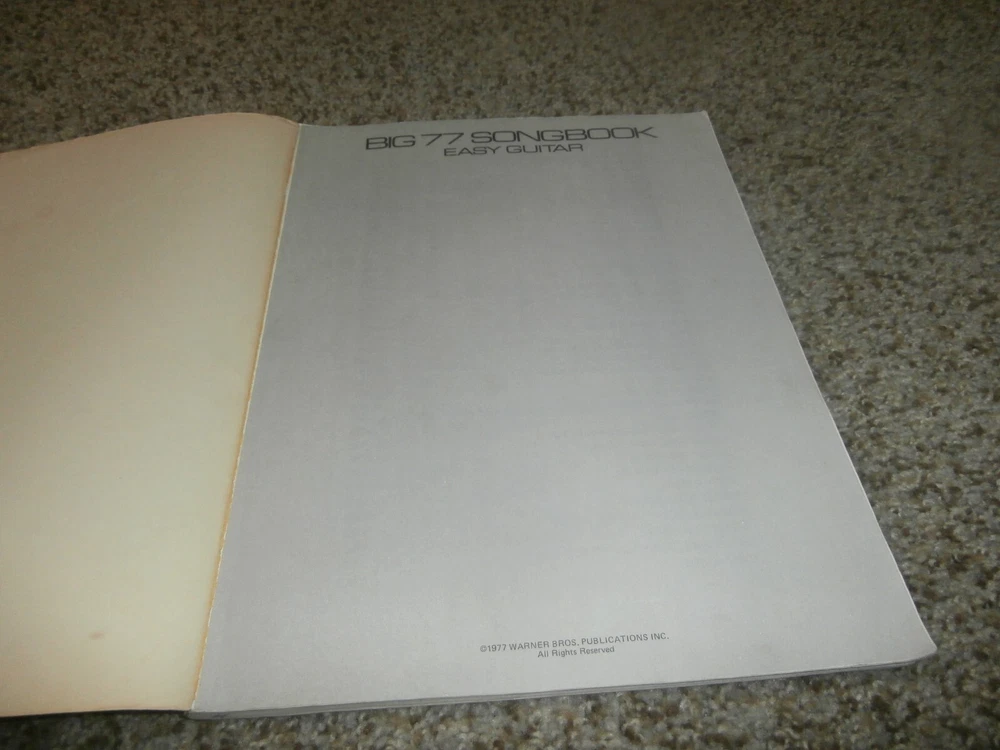This Big 77 Songbook is a must-have for any guitar enthusiast. The paperback book contains a collection of easy-to-play guitar songs, perfect for beginners and those looking for a refresher. The book features songs from various genres, including contemporary and classic hits. The songbook is a first printing from Warner Bros, published in 1977. It is an excellent addition to any music collection and a great gift for someone who loves guitars. With the Big 77 Songbook, you can learn to play your favorite songs and improve your guitar skills. Some wear as the pictures show.