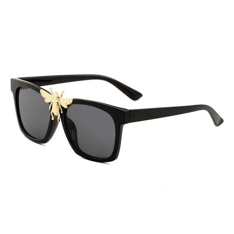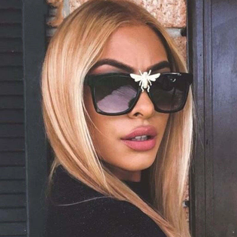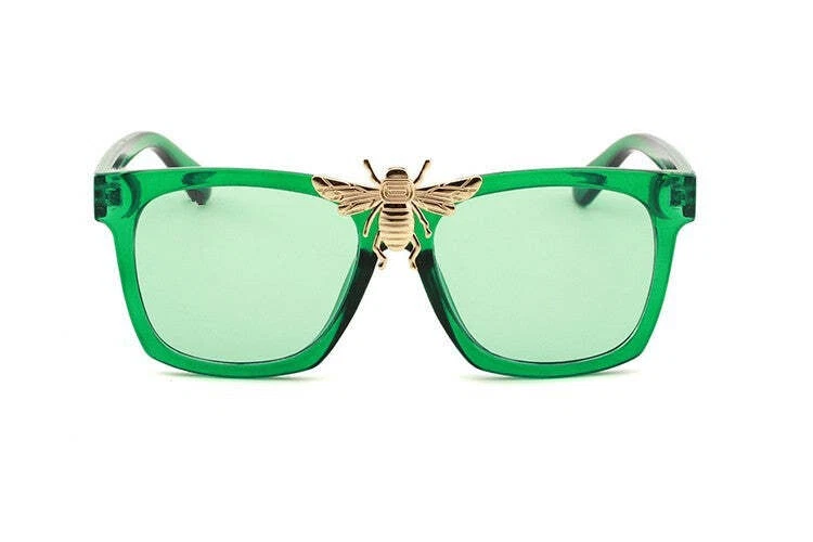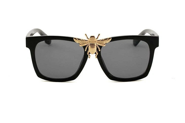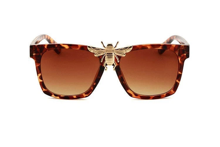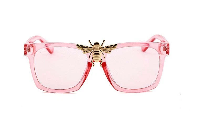 Product information: Specification: Conventional Glasses structure: Frame Lens material: AC Style: Exquisite Frame material: Plastic Anti-UV grade: UV400 Style: New Visible light perspective rate: 99 (%) Frame color: #1 bright black full gray film, #2 bright black and blue film, #3 tea color double tea film, #4 leopard double tea film, #5 green, #6 pink Big bee decoration sunglasses, trendy big square sunglasses, fashion glasses
