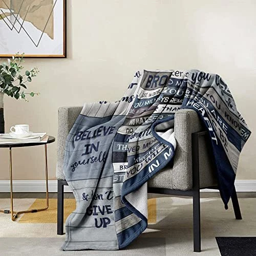 Design Description:Full-Width Printing, Single-Sided Printing, Clear Printing. It'S Wrinkle And Fade Resistant, Doesn'T Shed, And Is Suitable For All Seasons.Size Description:There Are Three Sizes To Choose From, 50 X 40 Inches Suitable For Children,60 X 50 For Teens, 80 X 60 For Adults.Product Performance:The Blanket Is Constructed Of High-Quality Flannel That Is Soft To Touch, Supple, Easy To Care For, And Lightweight, More Comfortable And Warm. Does Not Absorb Any Moisture. Lightweight, Durable, And Can Be Folded Compactly. Super Soft And Feels Great, Anti-Wrinkle, Anti-Allergic, Non-Replaceable Feature, Very Suitable For Those Who Are Prone To Allergies And Discomfort!Applicable Scene:Bed Sofa, Couch, Bedroom, Living Room, Guest Room, Kids Room, Rv, Vacation House. It Is Also Perfect Use For Family Outdoors Activity, Camping, Cinema, Traveling, Sports And Beach.Multi-Function Use:Be Used As Wearable Blanket, Sofa Blanket, Bed Blanket, Travel Blanket, Picnic Mat, Etc. The Outside Has Super Soft High-Quality Fabrics, And The Inside Is White. It Will Be A Special Gift At Birthday, Christmas, New Year'S Day, Thanksgiving, And Bring Fun To Your Family, Friends, Classmates.Easy To Care:It Is Machine Washable, Hand Washing And Dryable For Easy Care. No Shrinkage, No Colour Fading, Durable,And No Unravelling After Washing. But Do Not Use Bleach.Romantic Gift:Give The Blanket To Your Family Or Friends As A Gift. They Will Be Happy! It Will Be A Great Gift For Birthdays, Anniversary, Graduation, Christmas, New Year's Day, Thanksgiving, And Other Festivals. 【MATERIAL DESCRIPTION】: Made Of Non-Pilling Fleece, More Comfortable And Warm. Does Not Absorb Any Moisture. Lightweight, And Can Be Folded Compactly. Super Soft And Completely Resist Shrinkage And Wrinkles. 【SIZE DESCRIPTION】: There Are 60x50 Inches for Brother from Sister or Brother. From Expectant Newborn, For A Baby Toddler, Or Young Children And Teenagers, Adults, That Needs A Warm, Caring, Thoughtful Gift - The Best Brother Birthday Gifts From Sister Or Brother. 【TO MY BROTHER】:I Just Want To Let You Know You Mean So Much To Me. Once A Brother, Always A Brother, No Matter The Distance, No Matter The Difference, And No Matter The Issue. Thank You For Being You. Always Remember You Are Braver Than You Believe, Stronger Than You Seem, Smarter Than You Think, Loved More Than You Know. Wherever You Are, You Will Always Be In My Heart. 【APPLICABLE SCENE】: The Blanket Easy To Carry, It Is Very Suitable For Indoor And Outdoor Use In Cold Weather (Especially During Camping And Picnic) To Provide Continuous Warmth, And It Is Also Very Suitable For Lying On A Bed, Sofa, Car, And Office, Etc. Whether Summer Or Winter. 【PERFECT GIFT】: When You Bring The Blanket For Your Brother, It Will Be A Perfect Gift For Anniversary, Graduation, Birthday, Christmas, New Year'S Day, International Children's Day, Valentine's Day, Wedding, And Other Festivals. It Will Be A Great Gift!
