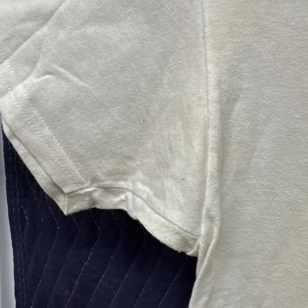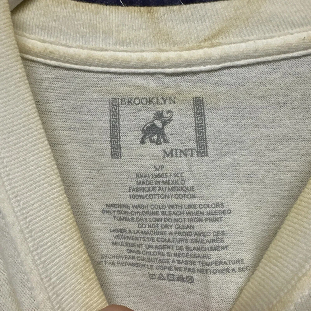 This limited edition Brooklyn Mint t-shirt is a must-have for any fan of Biggie Smalls. The white cotton blend fabric features a graphic print of the iconic rapper, with blue accents of embroidered logos and buttons. The shirt is designed with a crew neck and short sleeves, perfect for any season. This hippie and musical themed t-shirt is made with lightweight and breathable fabric, which is perfect for quick dry and all seasons. The shirt is preshrunk and stretchy, ensuring a comfortable and regular fit. It also features a full zip and hood, making it perfect for Friends and Free! lovers. Order now this classic 90s logo t-shirt, perfect for any occasion.