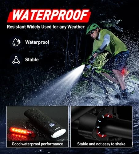 Return Policy Fast Delivery Trusted seller Bike Light Set USB Rechargeable - 5400mAh Bike Headlight & Taillight with Digital Display, 3 LED Super Bright 1600 Lumen 6 Lights Modes for All Bicycles, Road, Mountain, Night Riding Product Description 3 LED Beads & 6 Modes - Bike headlight is equipped with 3 professional T6 LED lamp beads with 1600 lumen max output, able to provide ultra bright lighting in wide range and in the distance. Features 6 lighting modes (high brightness-medium brightness-low brightness-Flash-SOS-Beacon) for choosing according to your needs. Enhance the safety for night riding cycling. 5400mAh Large Capacity Battery - Built in 2 large capacity batteries, the bike headlight can be charged conveniently via the Type-C port. In addition, coming with a USB output port, it also serves as a power bank for charging your devices. The use time of the headlight is 7.5hrs in high brightness, 11hrs in medium brightness and 23hrs in low brightness. When in outdoor cycling, you can also use it as a flashlight or emergency light. Battery Power Display & 360° Rotation - The bicycle front light is designed with battery power display function, showing the percentage of remaining battery (0~100), which can help you to master the usage and charging time more conveniently. Moreover, the mount bracket for the headlight is 360° rotatable, allowing you to adjust to the suitable angle according to actual situation during cycling. Military-grade Quality & Waterproof - Our bike lights set adopts high-quality aluminium alloy, superior in the high performances of light weight and durability. The outer shell also boasts the heat dissipation and corrosion resistance. Besides, owing to the water resistance, the bike light is able to withstand rain and splash, always lighting your way in all kinds of weathers. Easy Installation & Usage - Both the bicycle front light and tail light are attached with a mount bracket, easy to install with no other tools required. As the lights are compact, lightweight and solid, you can install and detach them in 1min with ease. The mount brackets are universally applicable to various bikes including mountain bike, children bike and road bike. Shipping Returns Payment Shipping Shipping is FREE to all addresses other than APO/PO boxes in the lower 48 states. All our stock ships from US-based warehouses. Shipped via USPS or UPS (depending on location and package weight) Unless stated otherwise, all orders will ship within 24-72 hours of your payment being processed. Check our feedback to see the great reviews of FAST shipping we offer. Returns Seller does not accept returns Payment We currently accept payment via eBay managed payments only. Once payment is cleared, we will dispatch your shipment within 1-3 business days. Please refer to the "Shipping" tab for more information regarding shipping speed to your destination.