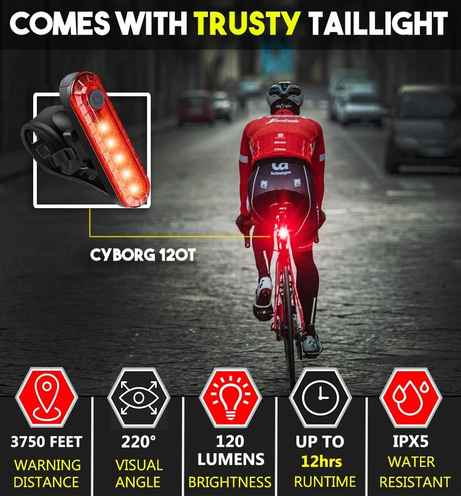Store New Arrivals Add to Favorite View Feedback Contact Bike Lights Set – Gator 450 LED USB-C Rechargeable Headlight & Rear Taillight with Front and Back Bike Reflectors – Bicycle Accessories for Night Riding, Men & Kids Description Part Number Halo 960 Style Gator 450 (Headlight & Rear Taillight Set) Mounting Type Handlebar Mount, Seatpost Mount Power Source Battery Powered Brightness 450 Lumen Color Black Material Aluminum Water Resistance Level Waterproof Package Weight 0.21 Kilograms Number of settings 1 Item Weight 2.4 ounces Suggested Users unisex-adult Auto Part Position Front Model Name GATOR450 Item Package Dimensions L x W x H 6.26 x 4.65 x 1.65 inches Item Dimensions LxWxH 2 x 1.1 x 1.75 inches Rechargeable Bike Lights: Say goodbye to disposable batteries! This USB rechargeable bike light set features a headlight with up to 7 hours of battery life and a taillight lasting up to 10 hours, providing eco-friendly, reliable power for every ride. Superior Visibility for Safe Night Riding: The BLITZU Gator 450 LED headlight and rear taillight deliver ultra-bright illumination, providing exceptional visibility during night cycling and ensuring you’re easily seen from a distance for safe riding in low-light or dark conditions. Complete Bicycle Safety Kit with Reflectors: Includes front and back bike reflectors to increase visibility from all angles, making this set ideal for commuting, mountain biking, road cycling, or urban biking in dark or foggy conditions. Perfect for Men, Women, and Kids: Whether you're a casual cyclist, avid commuter, or weekend warrior, this bike light set for men, women, and kids offers versatile, dependable bike lighting solutions for cyclists of all ages and skill levels. Ideal Gift for Cyclists of All Ages: Looking for a thoughtful gift for cyclists? This rechargeable bike light set makes the perfect present for Dad, Mom, boys, or girls—ideal for birthdays, holidays, or any occasion to ensure safer, more enjoyable cycling adventures. Product Description ALL BLITZU BIKE LIGHTS ARE PROUDLY DESIGNED IN THE USA! The Ultimate Bike Light Front and Back Combo by BLITZU Our bike lights are proudly designed in the USA. We strive to provide our customers with products that exceed their expectations. USB Rechargeable - Gator 450 can be charged thousands of times, no hassle from battery and no external battery pack needed. Ultra Bright - Powered by the latest LED bulb that creates a wide-focus beam pattern for better peripheral vision, visible up to 725 feet, flooding 85° enough to illuminate road. Extremely Durable - Water Resistant rating of IPX5. The new design, easy to open & close USB port protects light against the strongest downpours, tire sprays and splash. ABOUT US We offer the best prices around on high quality products. Our E-store includes media such as books, movies, music and games while offering electronics, toys, sporting apparel, clothing, tools, general home, garden items and more. SHIPPING We are always working hard to ensure your package arrives as soon as possible. Please understand that some factors like weather, high postal traffic, and the performance of shipping companies are outside of our control. We offer free shipping to the lower 48 states and ship within 2 business days of payment, usually sooner. We do not accept P.O. Boxes. Please provide a physical address. For shipping outside of the continental USA, we only use eBay's Global Shipping Program.The item is shipped to KY and then sent to the rest of the world. International customers are responsible for all duties and taxes. Continue to check out in order to calculate costs for shipping the item to your country. Messages regarding eBay's Global Shipping Program MUST be directed at eBay EXCLUSIVELY. RETURNS We offer a 30-Day Return Policy on items which you are not completely satisfied with. You have the option for a full-refund or an exchange of the item. No returns are available on items shipped outside of the USA. PAYMENT We accept PayPal. CONTACT US This page content is yet to come Please ad us to your favorite seller and visit again later Thank You CUSTOMER SATISFACTION We try our very best to make sure every customer is completely satisfied. If there's a problem, message us! We're happy to help. WE ACCEPT Copyright © 2021 AutoDS. | All Rights Reserved