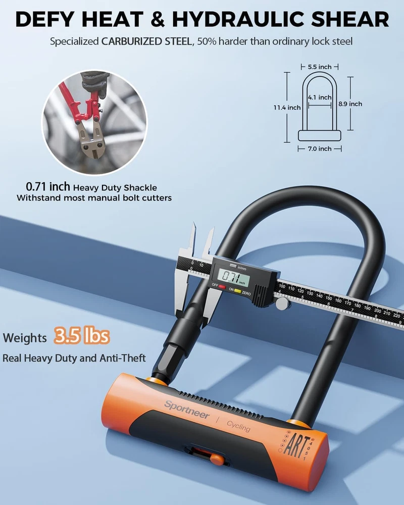 Store New Arrivals Add to Favorite View Feedback Contact Bike Lock - 18Mm Shackle Heavy Duty anti Theft Bike U Locks with 6Ft Security Steel Cable - Bicycle U-Locks with Keys & Sturdy Mounting Bracket for Road, Mountain, Electric & Folding Bike Description Item model number Sequoie 901 Item dimensions L x W x H 11.41 x 7.04 x 1.41 inches Number of Pieces 1 Lock Type Key Lock Included Components Bike lock, sturdy mounting bracket, and 6ft security steel cable Material Stainless Steel, Alloy Steel, Titanium, Zinc Control Method Touch Batteries Required? No Item Weight 4.62 pounds Shape U Shape Batteries Included? No Model Name Heavy Duty Bike U Lock Set Recommended Uses For Product securing bikes to fixed objects, protecting bikes from theft Special Features Anti theft, Key Lock Special Feature Anti theft, Key Lock Product Dimensions 11.41 x 7.04 x 1.41 inches Controller Type Hand Control 【Ultra-strong Security】Sportneer heavy duty U-lock is ART-certified 4 Star. Made of high-quality chromium manganese titanium, with dual-latch locking mechanism that resists conventional cutting, leverage, drilling. U lock can withstand up to 9.24T tensile strength and 8.28 T of cutting, making it virtually unbreakable. 【Two Ways to Lock and Widely Use】U shackle individual with thickness 18mm diameter(including 2mm PVC coating), 11.4 x 7 x 1.4 inches, weight 3.49lb. Can also be used with 12mm x 180cm steel cable(12mm is diameter, 180cm is length), comes in handy to lock your bike, helmet, and wheels to bike racks, fences, and poles in any parking scenario. Two ways to lock, one unbeatable security solution. 【Simple to Install and Carry】The anti-theft scooter lock comes with a highly adaptable mounting bracket that suits bike posts with 30-65mm diameter(Not suit for flat tube). Carry the lock and bracket with ease wherever you go. Refer to instructions or pictures for installation. 【Back-up Key Services】Still worried about losing all keys? If the key is lost and you can only throw away bike or destroy the bike locks? Take your worries away with a unique back-up key global delivery service. Contact customer service to register the key number while receiving your bike u lock, 2 free keys will be shipped globally if the key lost accidentally. 【Quality Assurance and Warranty 】This new arrival e-bikes locks inspired by for a larger and more secure need of customers, protect your bike like a pro with our weighty U-lock. Sportneer products are backed by a one-year warranty to ensure quality service. Alsolutely no lock is 100% safe, DO NOT leave your bike in high-crime areas or leave your bike unattended outdoors for long periods of time. Product Description Sportneer Bike U Locks Heavy Duty Anti Theft Set with 6ft Security Steel Cable Sportneer U Lock is ART-certified 4 Star Why Choose Sportneer U Lock? HEAVY-DUTY 18mm heavy-duty lock hook(16mm metal+2mm PVC) can withstand up to 9.24T tensile strength and 8.28 T of cutting, protecting the bike from theft. 6FT X 12MM BRAIDED CABLE Sturdy enough to greatly improve security performance. You can lock it in any bicycle parking scene by using the included cable! BACK-UP KEY SERVICES Have you worried how to open your bike lock if you lose all your keys? Just contact service and 2 free keys will be shipped globally if you need. DUAL LATCH LOCKING MECHANISM Dual latch locking mechanism outlasts any bike theft, effectively prevent thieves from opening the lock after cutting one end. Highly Adaptable Bracket Avoiding Scenario of Bike Stolen —Get A Great Lock That Will Protect You 18mm Diameter Can Resistant to Most Bolt Cutters Large U Lock Set for Various Uses ABOUT US We offer the best prices around on high quality products. Our E-store includes media such as books, movies, music and games while offering electronics, toys, sporting apparel, clothing, tools, general home, garden items and more. SHIPPING We are always working hard to ensure your package arrives as soon as possible. Please understand that some factors like weather, high postal traffic, and the performance of shipping companies are outside of our control. We offer free shipping to the lower 48 states and ship within 2 business days of payment, usually sooner. We do not accept P.O. Boxes. Please provide a physical address. For shipping outside of the continental USA, we only use eBay's Global Shipping Program.The item is shipped to KY and then sent to the rest of the world. International customers are responsible for all duties and taxes. Continue to check out in order to calculate costs for shipping the item to your country. Messages regarding eBay's Global Shipping Program MUST be directed at eBay EXCLUSIVELY. RETURNS We offer a 30-Day Return Policy on items which you are not completely satisfied with. You have the option for a full-refund or an exchange of the item. No returns are available on items shipped outside of the USA. PAYMENT We accept PayPal. CONTACT US This page content is yet to come Please ad us to your favorite seller and visit again later Thank You CUSTOMER SATISFACTION We try our very best to make sure every customer is completely satisfied. If there's a problem, message us! We're happy to help. WE ACCEPT Copyright © 2021 AutoDS. | All Rights Reserved