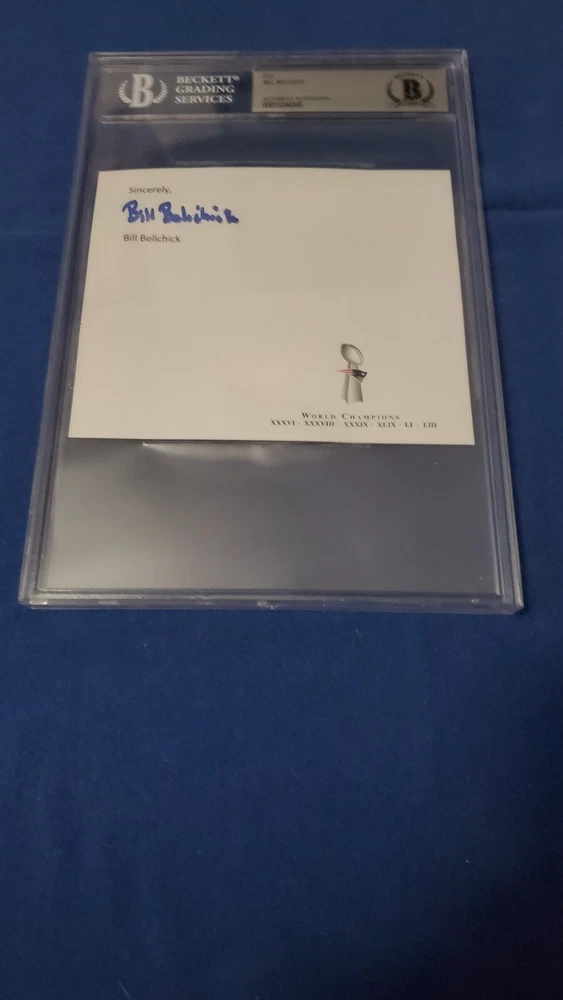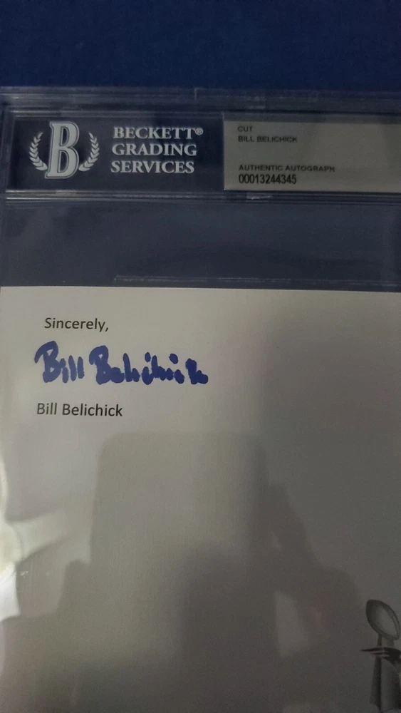 Hello Ebay autograph collectors. I have been dealing with autographs for many years and guarantee ALL of my items to be 100% genuine. Please check my amazing Ebay feedback and buy with confidence. You will not be disappointed with my products or service. RARE HAND SIGNED AND ENCAPSULATED CUT OF BILL BELICHICK CERTIFIED AUTHENTIC BECKETT. PLEASE SEE PICTURE OF ACTUAL ITEM YOU WILL RECEIVE ABOVE. We have a 100% 30 day return/refund policy. We ship within 24 hours of receipt of payment (or next business day Monday-Friday except holidays). We ship either FedEx ground or Priority mail depending on your location and the size of the item. Anything under 13oz ships 1st class USPS. If your payment is received by 2pm your item will be mailed that same day. For the fastest delivery please make sure your paypal account has your correct name and shipping address at the time of checkout. We ship using delivery confirmation and/or tracking numbers for all orders.