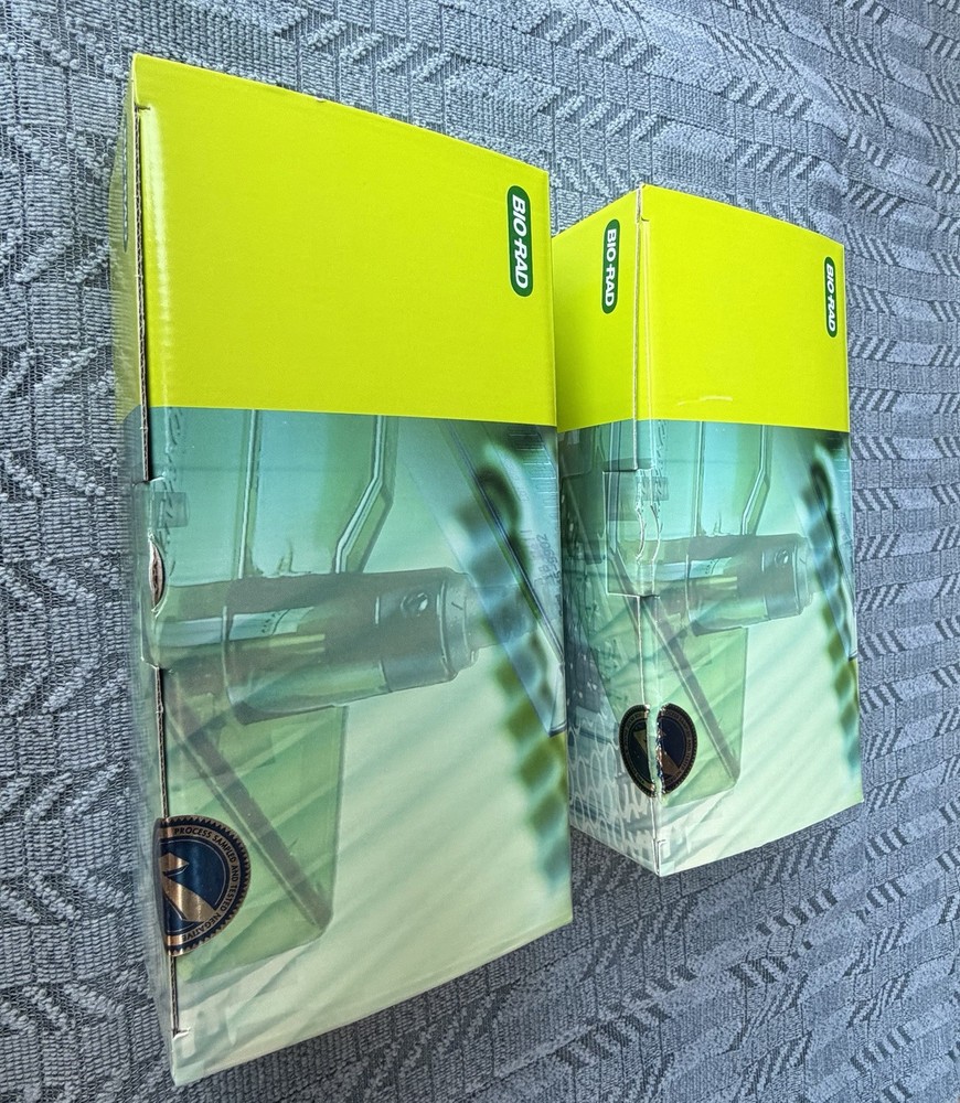 Tow boxes, Bio-Rad Hard-Shell® 96-Well PCR Plates, low profile, semi-skirted, clear/white HSL9605, Pkg of 25, clear shell/white well PCR plate Note: 1. One box, still in its original packaging, The price is $120; 2. One box, already opened, 20 plates in the box, Never used, The price is $60. 3. Total : $180
